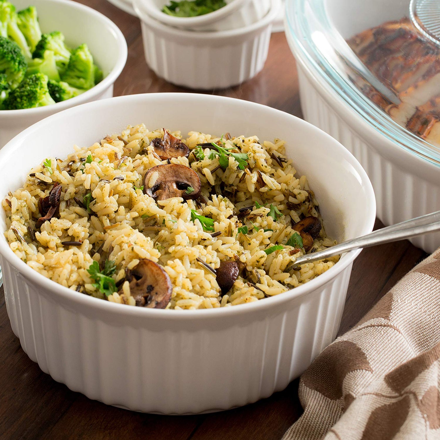 Details: The recipe for a great Dish starts, surprisingly, with a great Dish! Corning ware French White bakeware proves that when it comes to food preparation, few things are more convenient than Baking and serving in one dish. With its classic, fluted design, French White oven-to-table bakeware imparts a traditional elegance that is a perfect complement to any decor. Versatile yet stylish, Corning ware French White is simple, from start to finish! Set includes 2. 5 oval and 1. 5Qt round with glass and plastic cover, 16oz round with plastic cover, two 4oz ramekins and 24oz round with plastic cover.