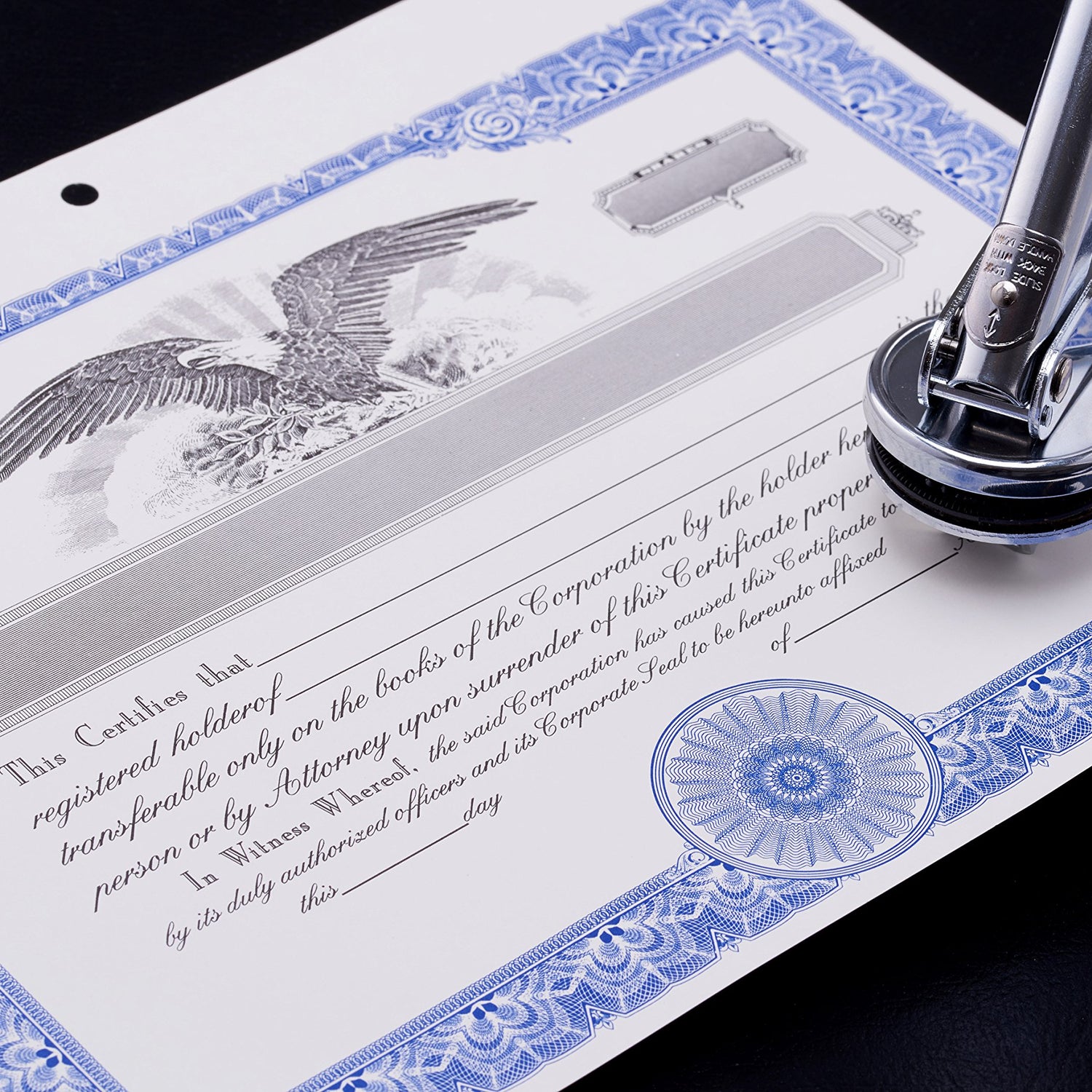 Details: Corporate Kit (Black) - Binder, Slipcase, Minutes & Bylaws, Stock Certificates, Index Tabs & Metal Corporate Seal