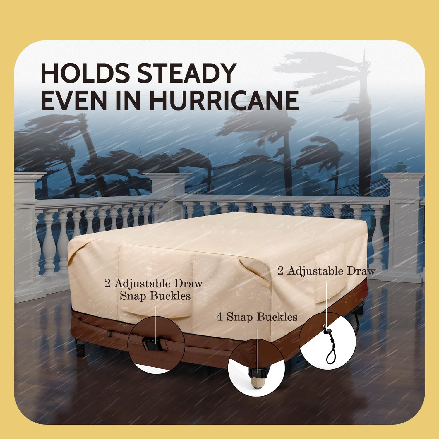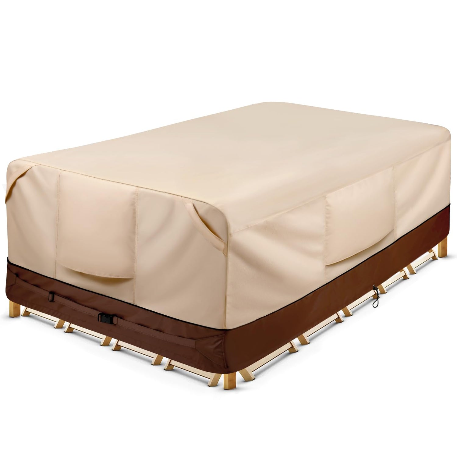 - Customizable Outdoor Furniture Set Covers - Our innovative design features 2 adjustable buckle straps, making it simple to tailor the cover's fit to your exact needs. You can easily adjust the cover's hem for a custom snug fit. Additionally, we provide 2 convenient adjustable drawstring and 4 click-close straps, allowing you to effortlessly cinch the outdoor furniture covers in place and keep them securely fastened