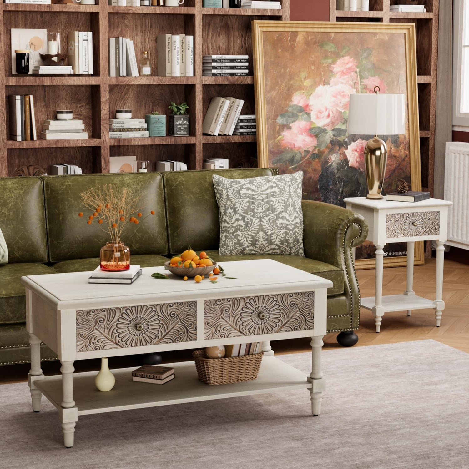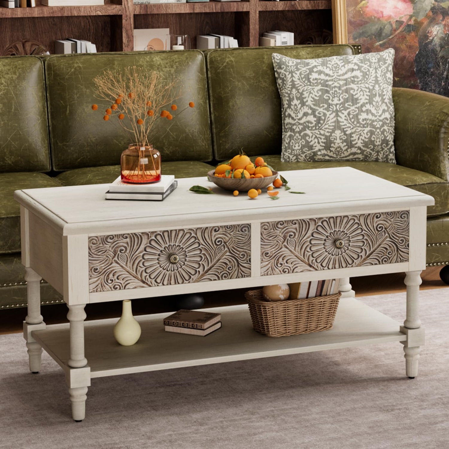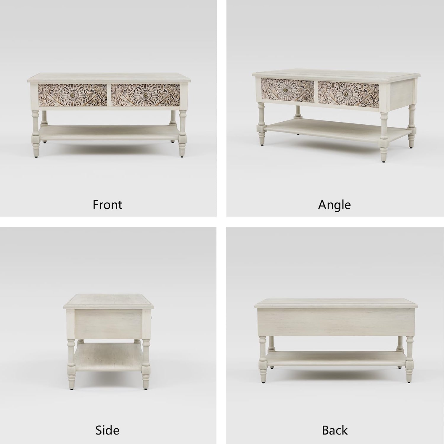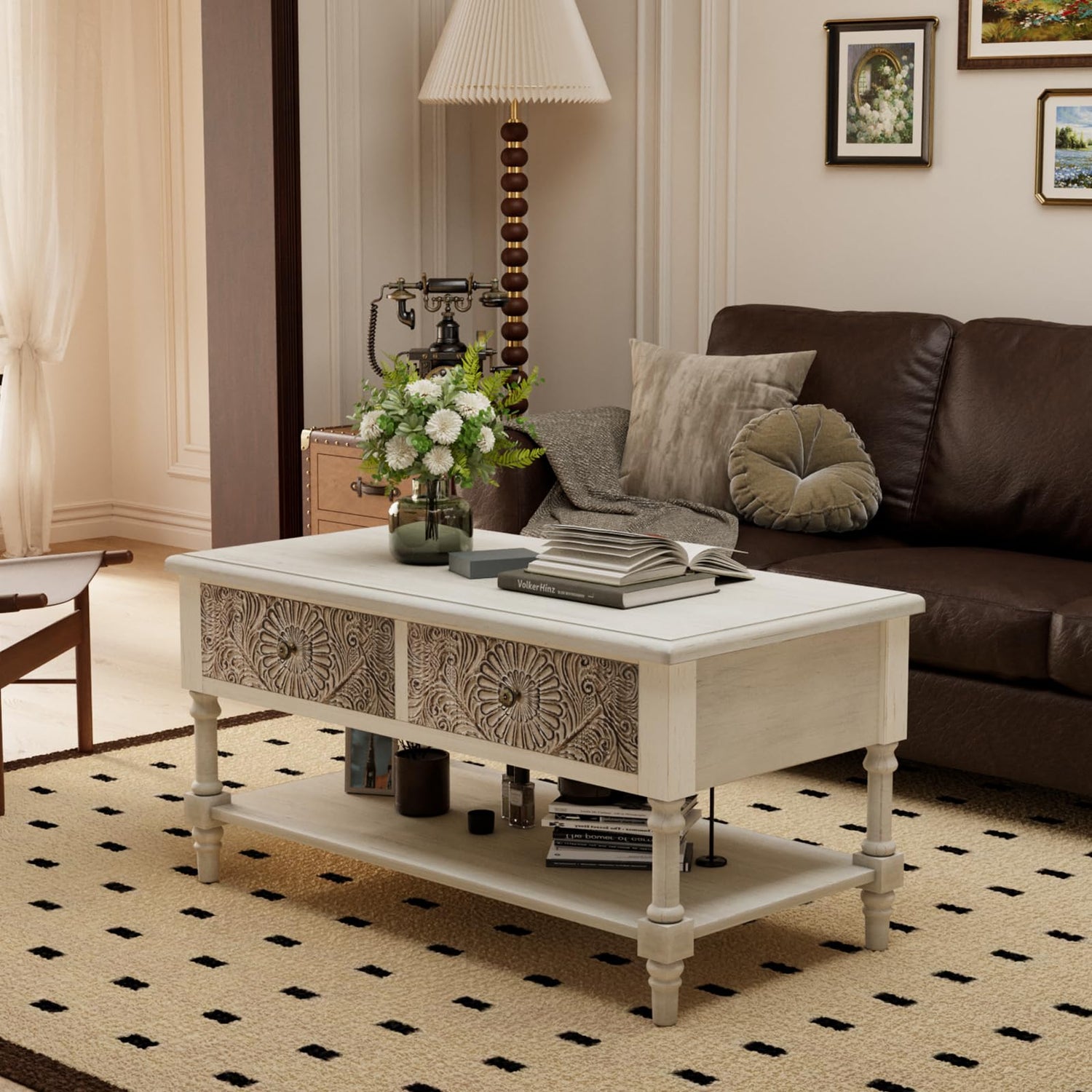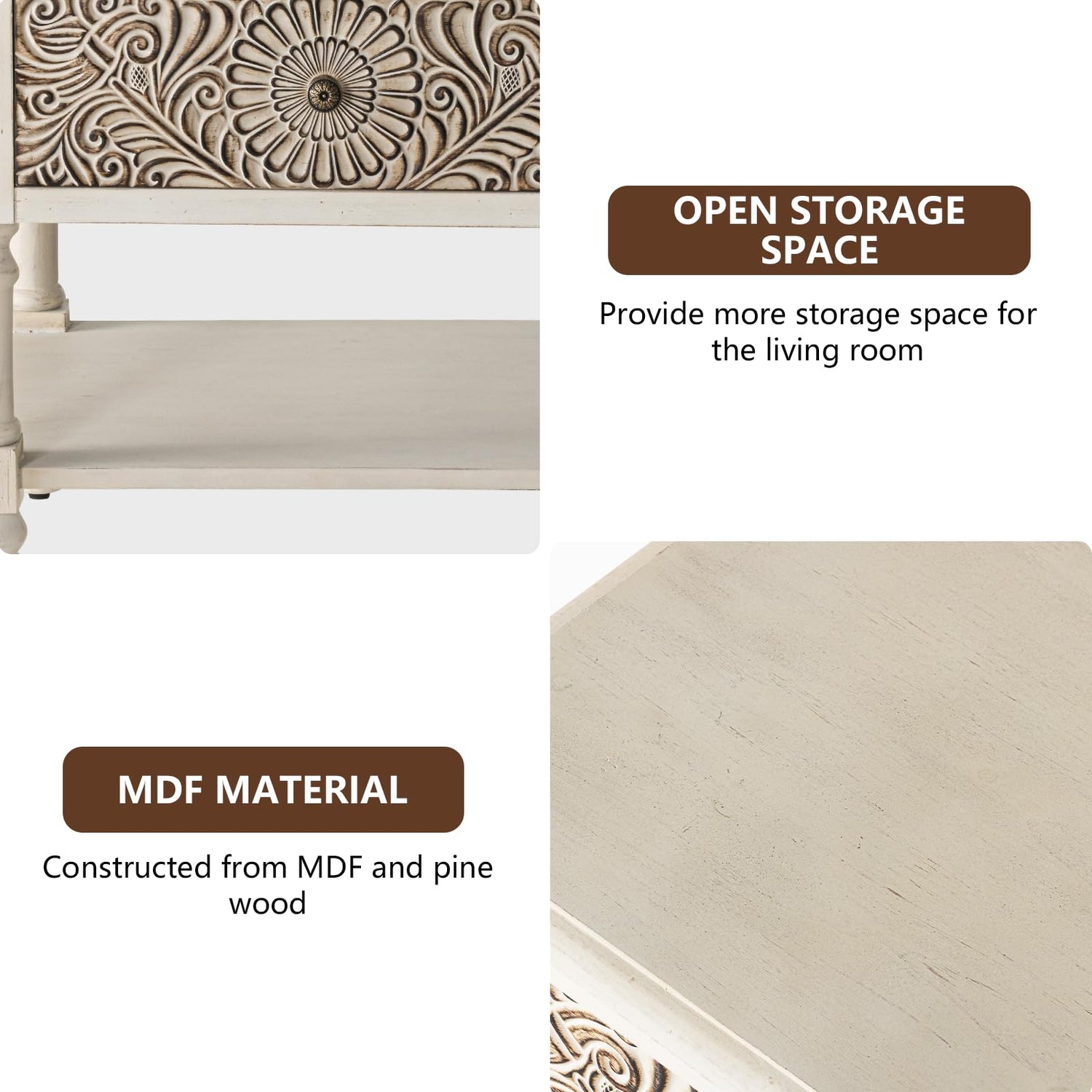 - 【Distinctive Design】 :Our coffee table features intricate carved floral patterns, adding a touch of elegance to your living space. This is a vintage approach to the design, which adds more taste to it. The smooth surface can be easily cleaned with a damp cloth to maintain its luster.