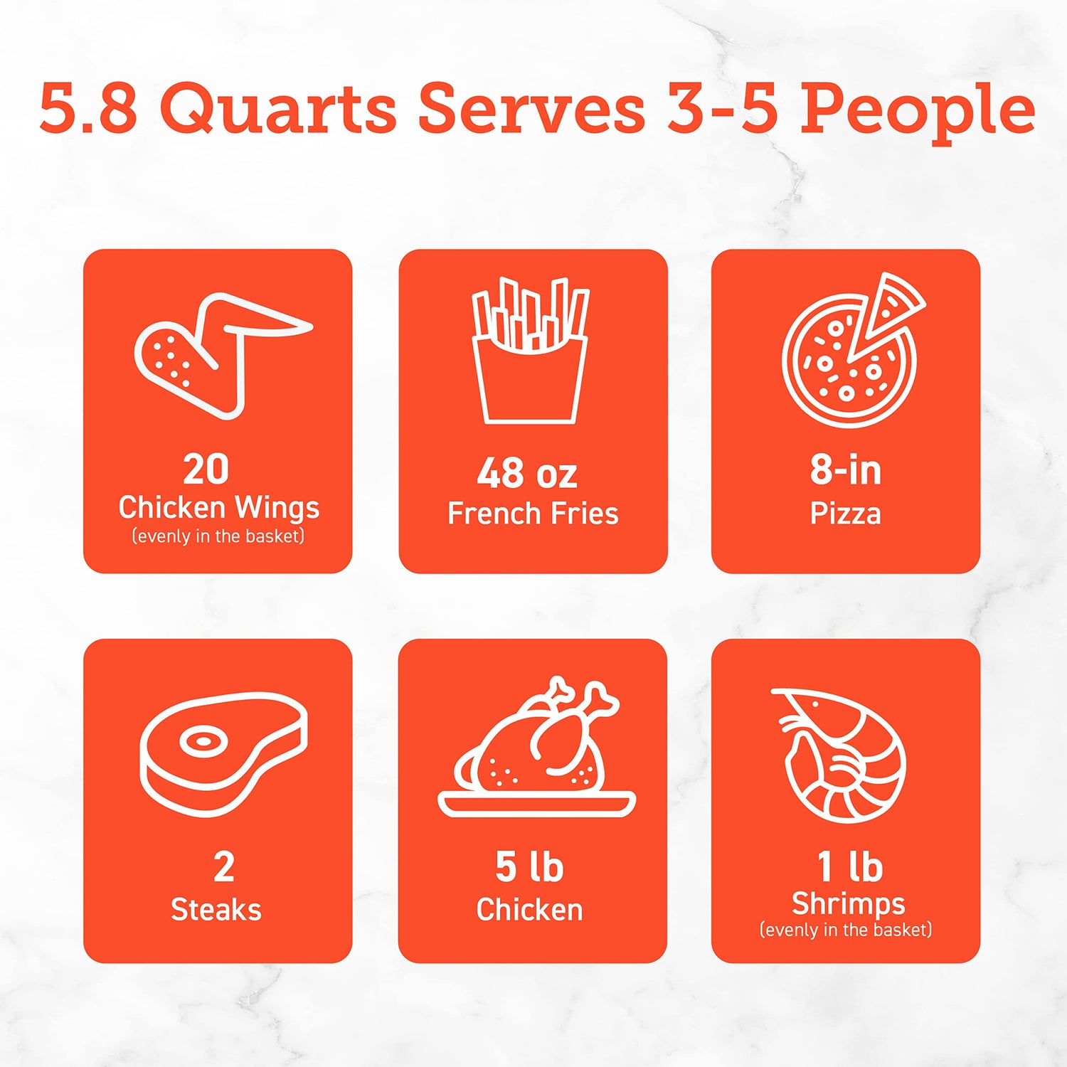 - SERVES 3–5 PEOPLE: The square 5.8-quart baskets can fit a whole 5 lb chicken, perfect for family dinners