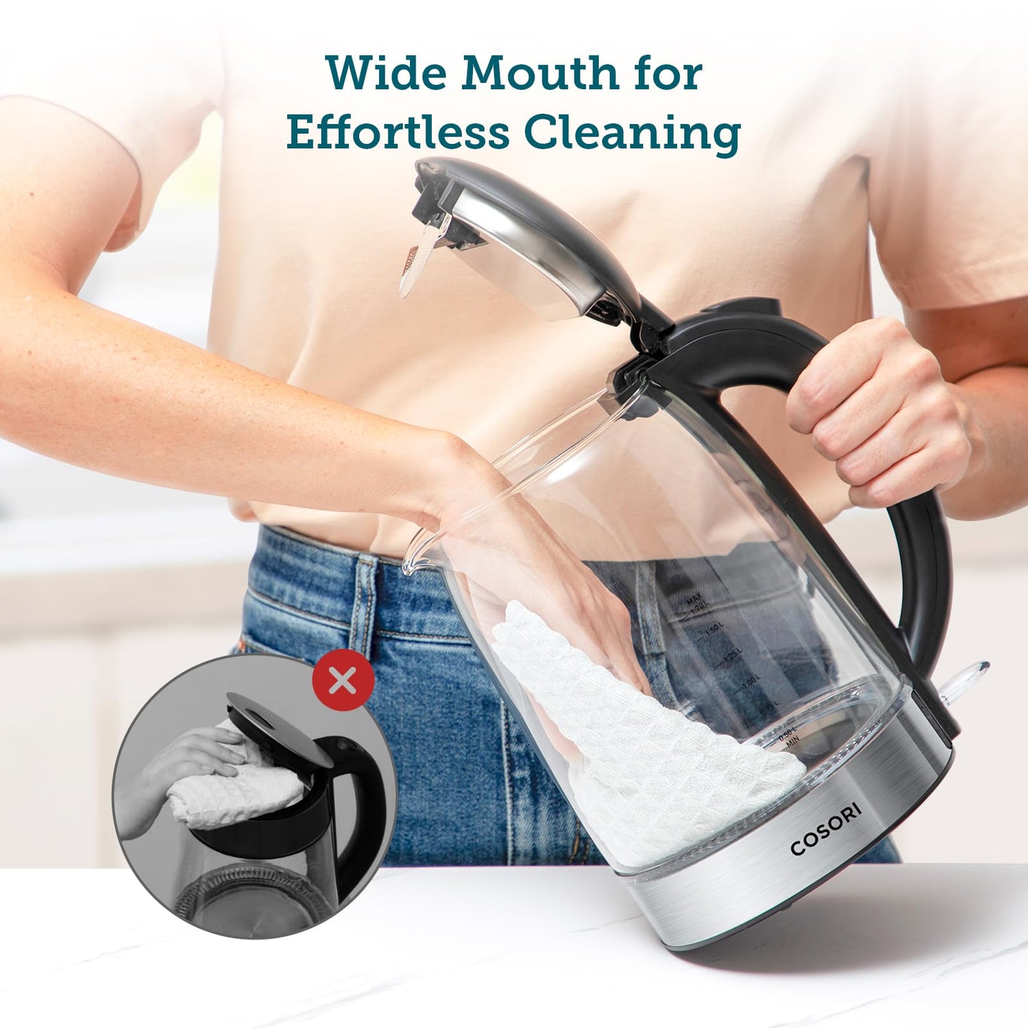 Cosori Electric Kettle, No Plastic Filter & Spout, Stainless Steel Inner Lid, Tea Kettle & Hot Water Boiler For Coffee & Tea, Water Heater & Teapot, Automatic Shut Off, Black, 1.7L/1500W