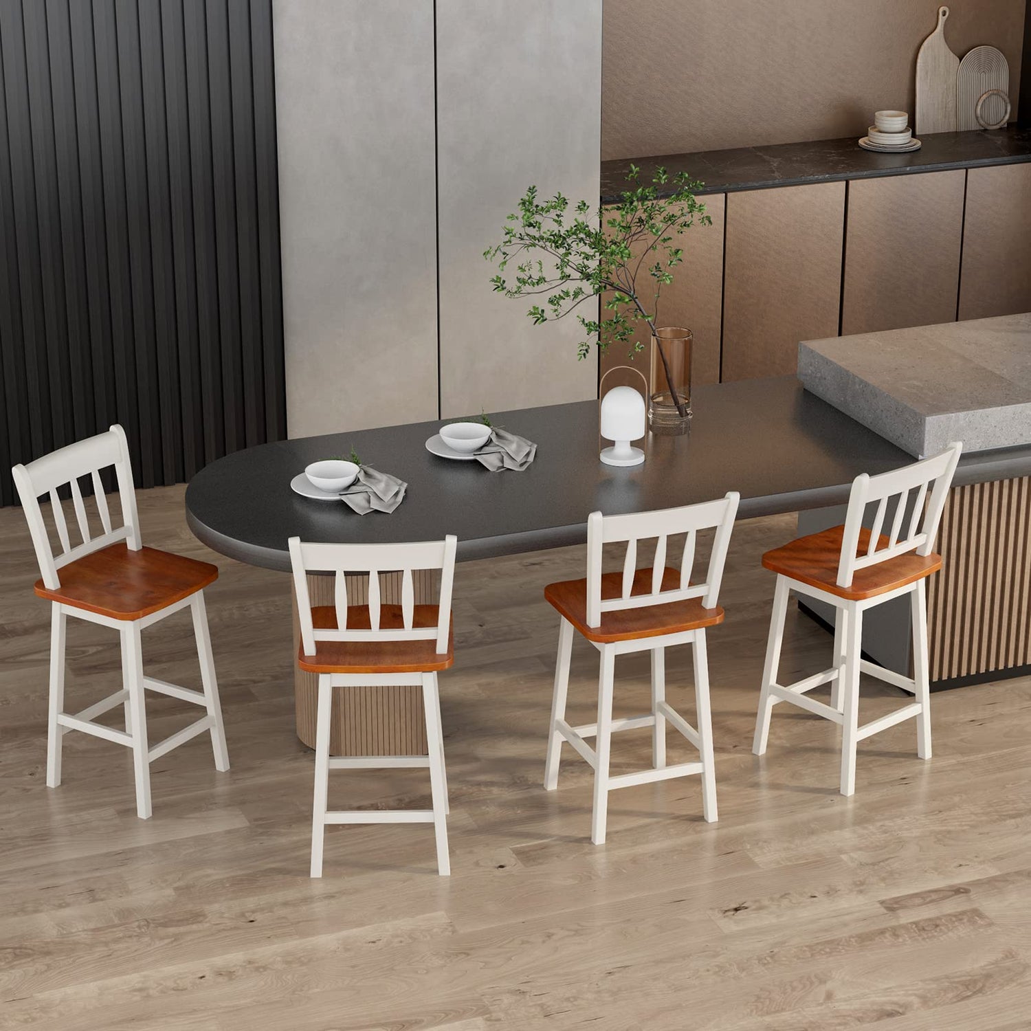 COSTWAY 24.5 Inch Ergonomic White Bar Stools Set of 4 with 360° Swivel & Footrest