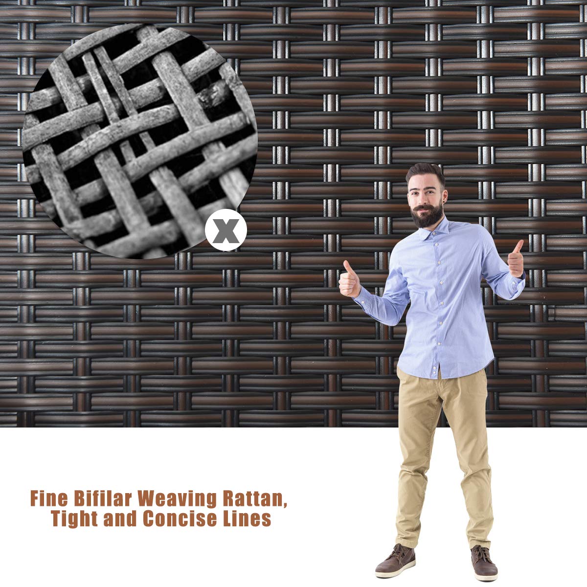 - PE Rattan Frame for Outdoor Use: Crafted from powder-coated steel frame and high-quality PE rattan, this 4-piece patio set can adapt to all weather changes and stand the test of time. It has incredible toughness and superior load-bearing capacity. Plus, non-slip foot pads effectively increase stability and prevent the floor from being scratched.