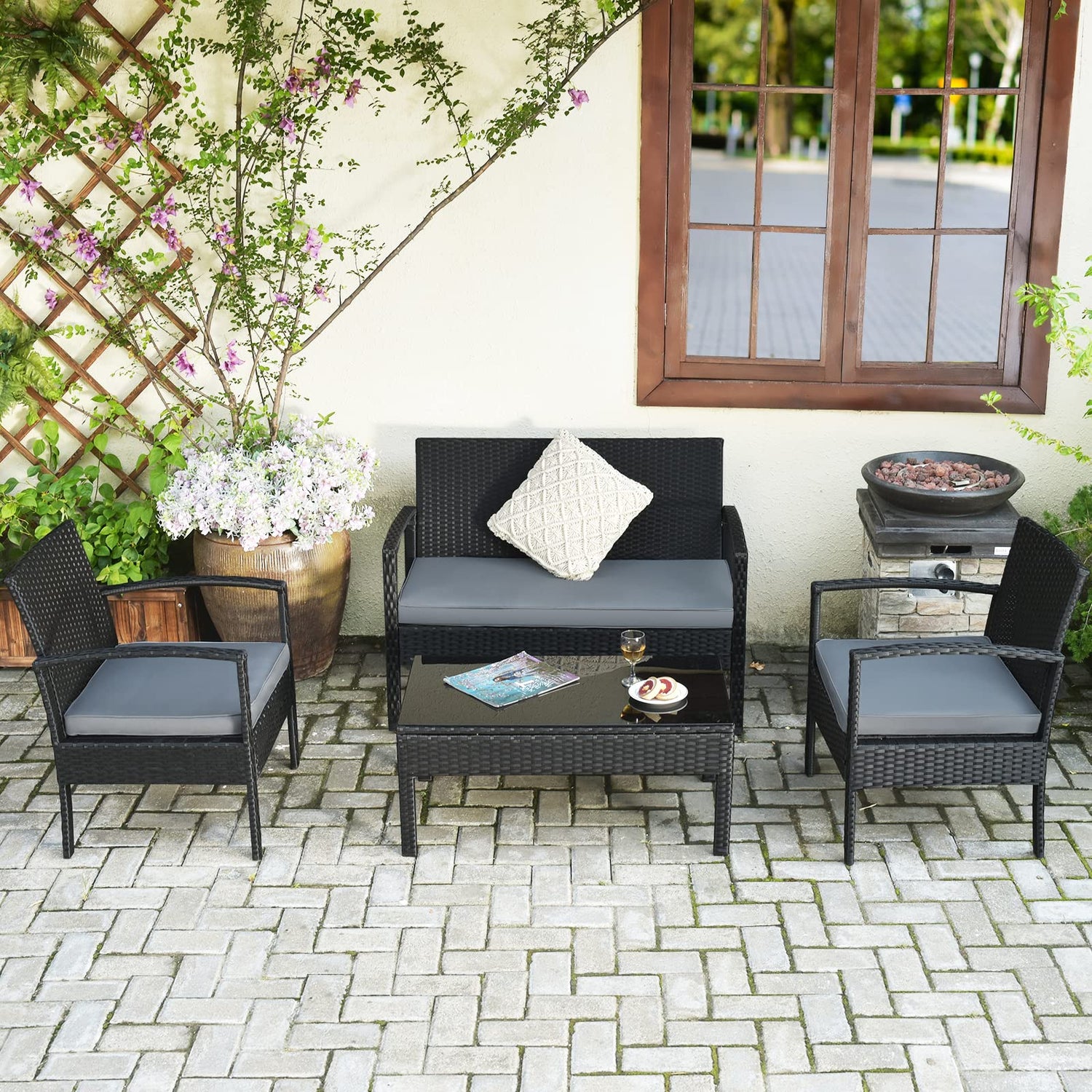 - Modern and versatile sofa set: Consisting of 2 armchairs, a loveseat and a coffee table, this sofa set offers enough seating for 4 people to enjoy outdoor leisure and can be easily modified to suit your needs. This simple yet stylish sofa set is ideal for your patio, poolside, backyard or other outdoor space.