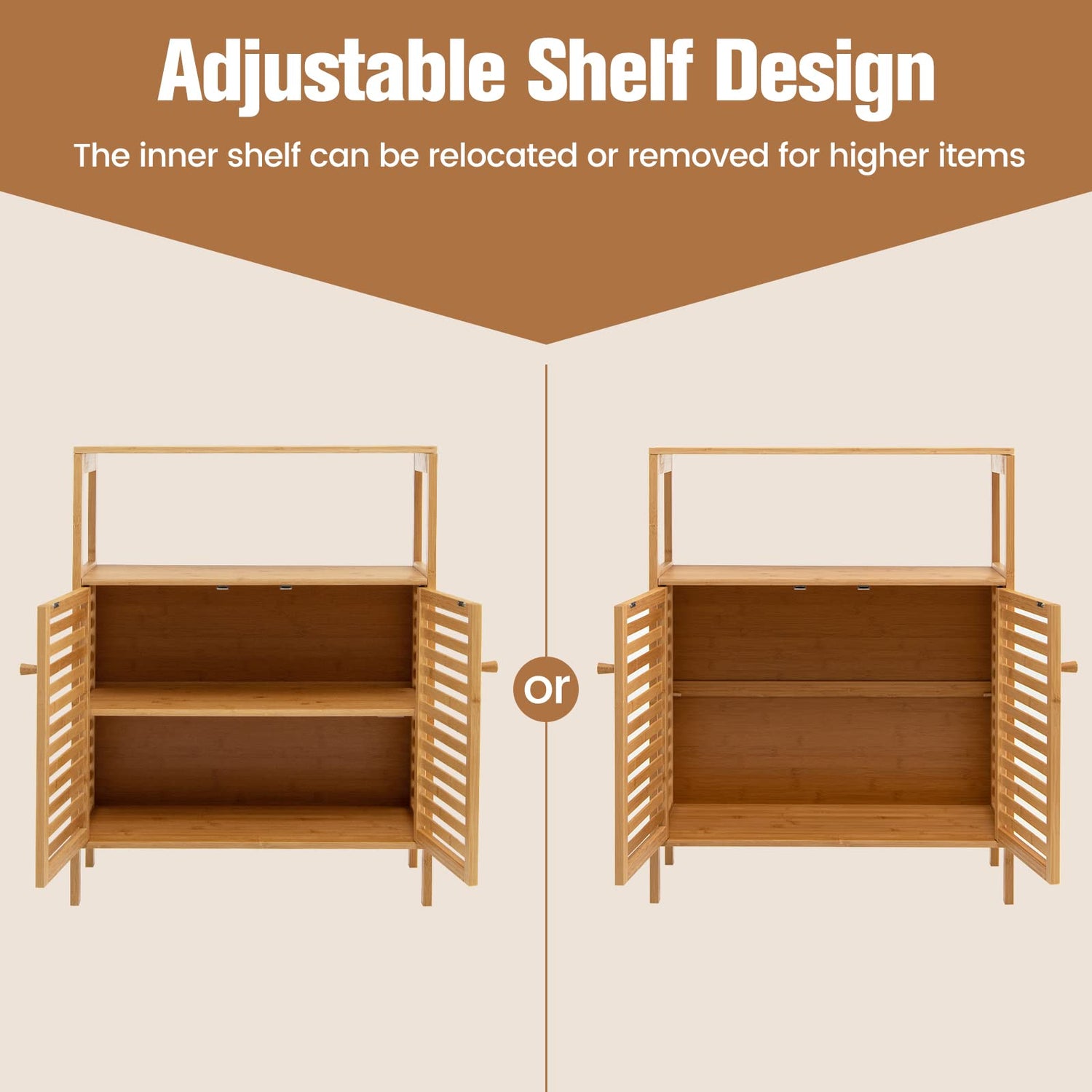 COSTWAY Bamboo Bathroom Cabinet, Freestanding Storage Cabinet Organizer with Louver Doors & Removable Shelf, Bathroom Floor Cabinet for Living Room, Kitchen, Entryway, Natural
