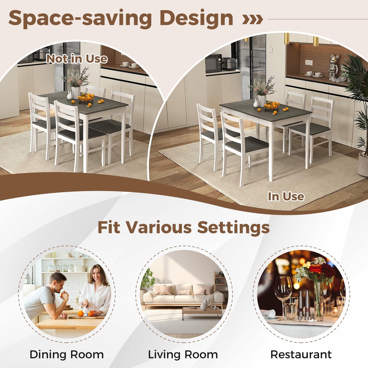 COSTWAY Dining Table Set for 4, Wood Kitchen Table Chairs Set with Rubber Wood Legs, Space-Saving Design, Modern 5-Piece Dinette Set for Small Place, Kitchen, Dining Room, Restaurant (Grey)