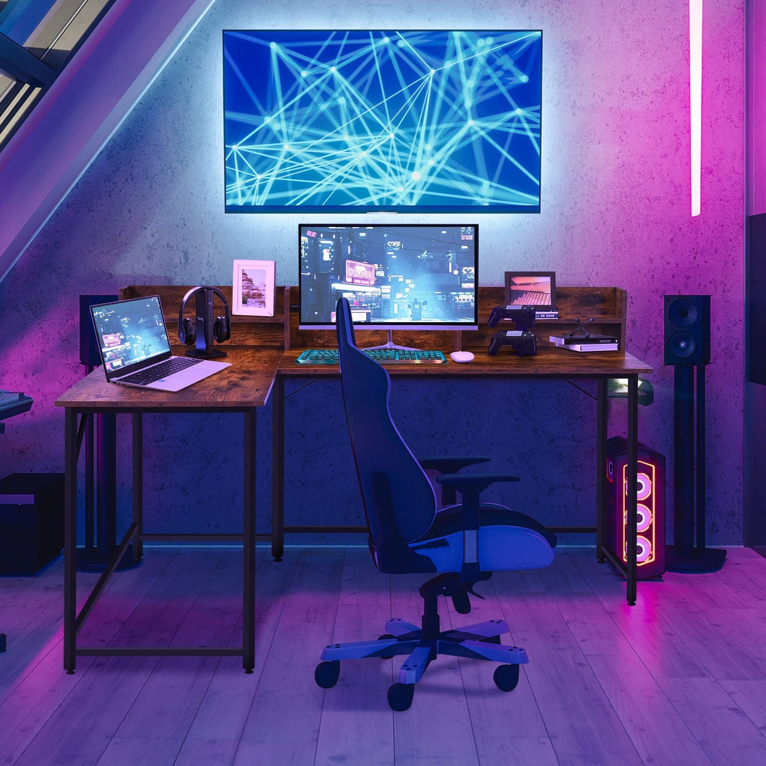 - 【3-in-1 Hutch for Multipurpose Storage:】The L-shaped computer desk features an additional storage option on the desk for you to keep you work space tidy and clean. The tabletop hutch consists of 2 open shelves and a file rack, offering enough space for file folders, stationery and other ornaments.