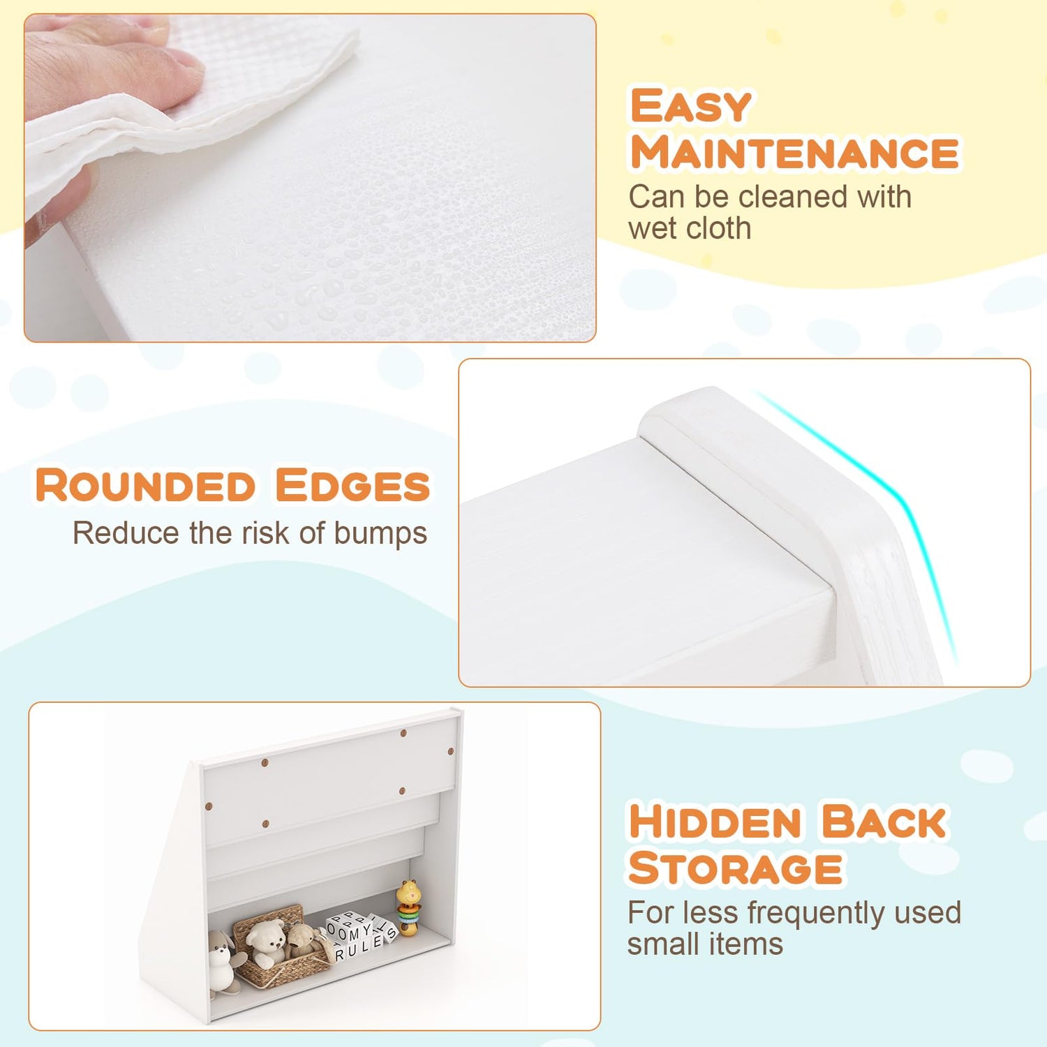 - Montessori-Inspired Learning Hub: Designed with Montessori method, this book rack for kids makes them focused on led learning and nurtures independent exploration from an early age. Also,the open feature and suitable height of this front-facing bookshelf help kids spark a passion for selecting and reading books.