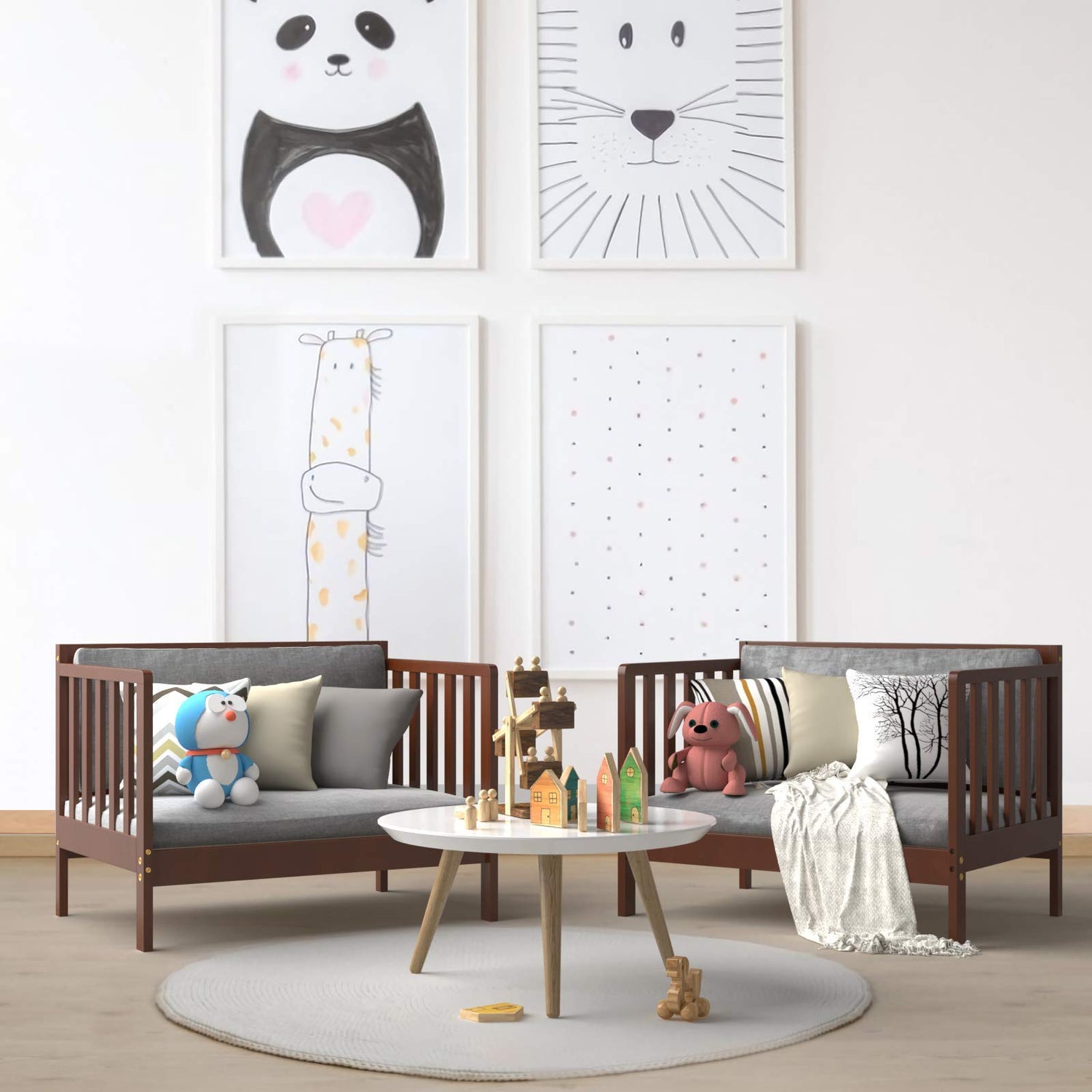 Introducing the Costzon 2-in-1 Convertible Toddler Bed Frame, an innovative piece designed to enhance your child's sleeping and playtime experience. Crafted in a charming brown finish, this bed frame seamlessly blends functionality with style.