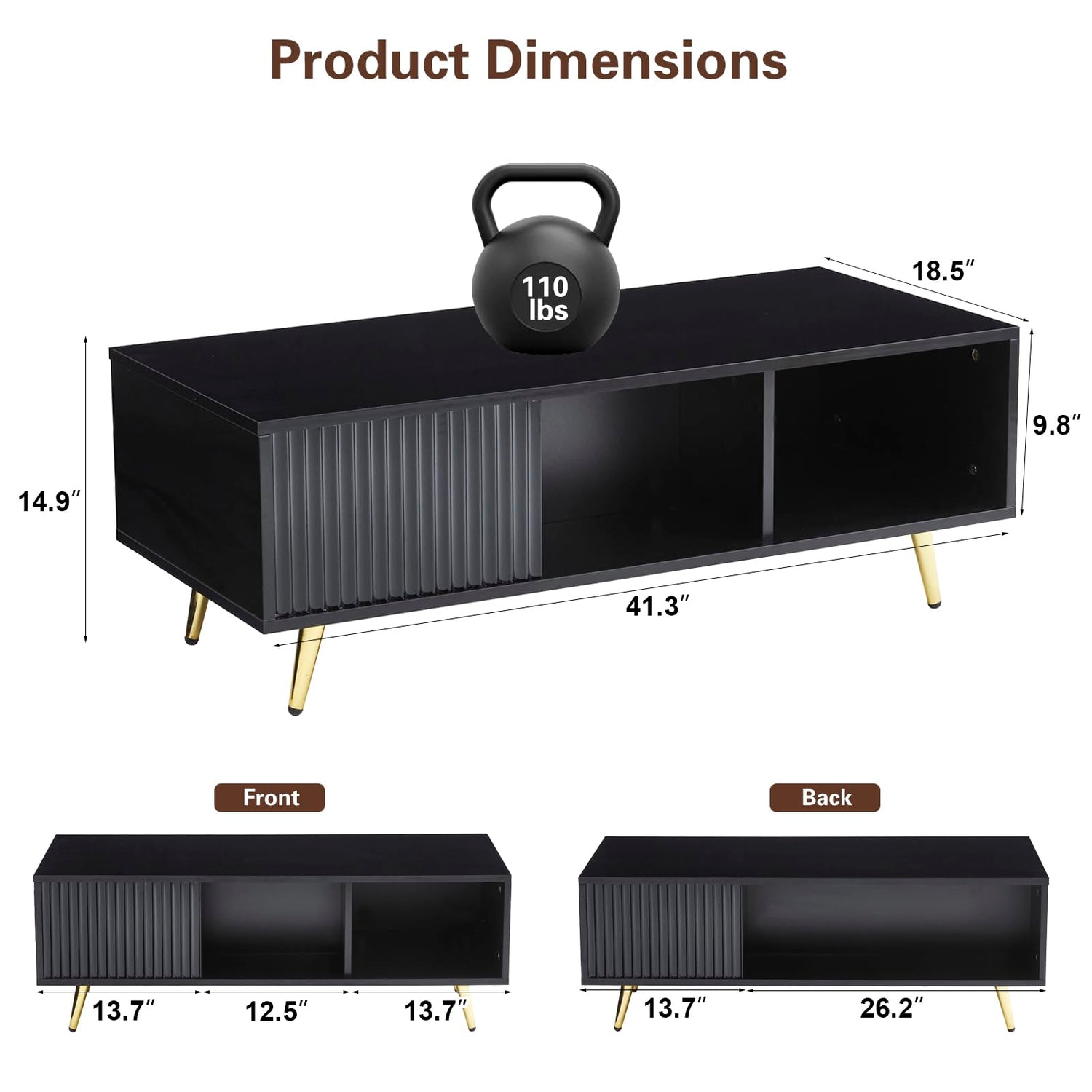 - Small Coffee Table with Storage: 41.3 inches width, this LED coffee table for living room not only saves a lot room,but also provides spacious storage; It has 2-layer open storage to keep room organized