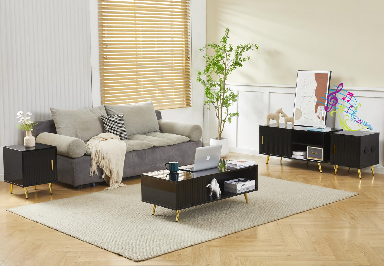 COSVALVE 41.3IN LED Black Coffee Tables for Living Room with 16 Colors LED Lights, Modern Minimalist Coffee Table with Fluted Panel, Rectangle Center Table Game Table