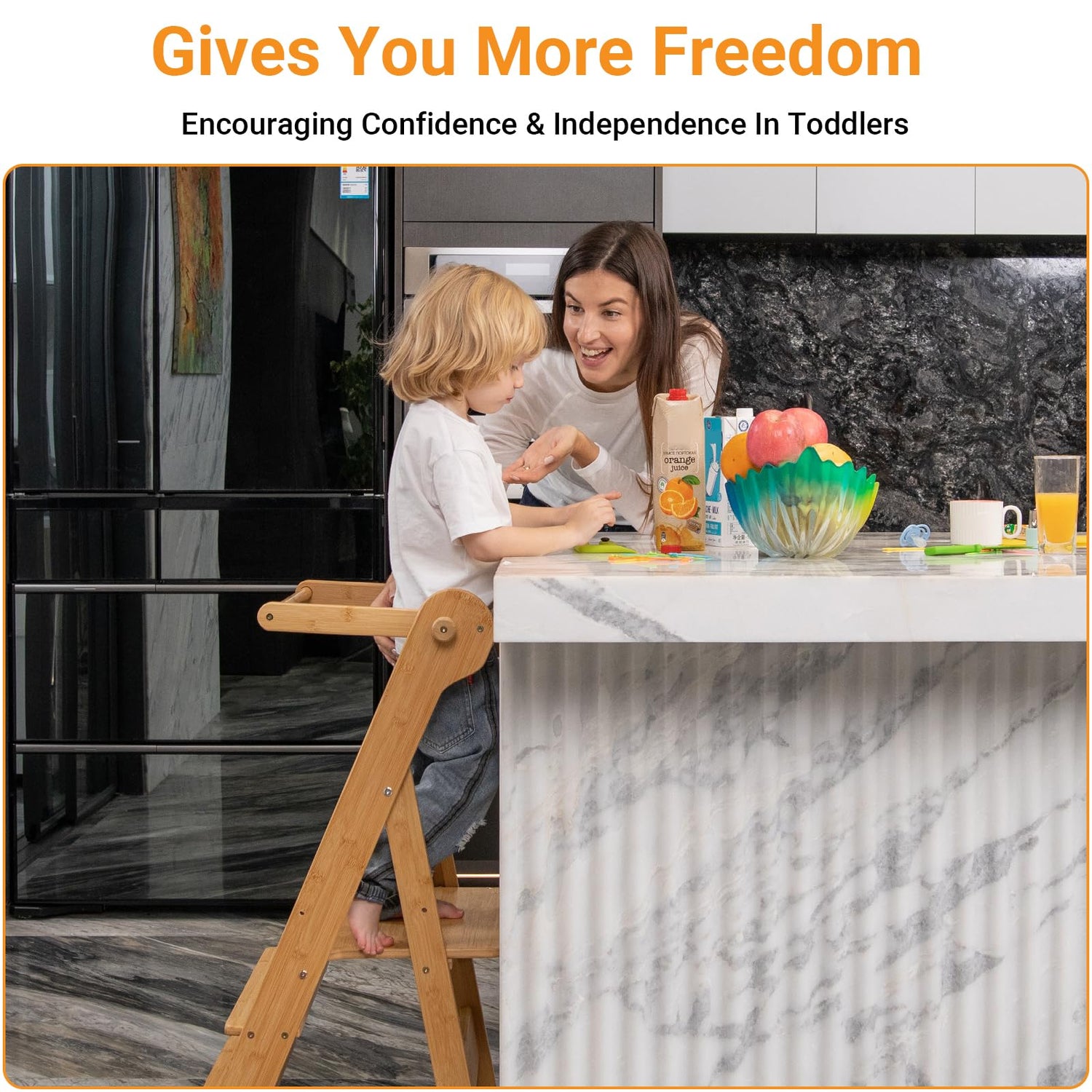 - Family Cooking Fun: This toddler kitchen learning helper elevates your child to the most common kitchen countertop heights. Ideal gift for your little one. It allows your little one to easily join in family activities, creating a more joyful and harmonious atmosphere at home. It encourages kids to learn cooking, prepare food, wash dishes, or brush their teeth in the bathroom.