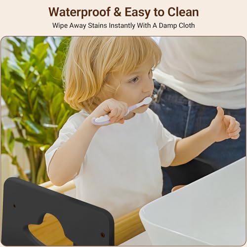 - Anti-Slip Strips Included: Six clear non-slip strips are placed on the step and stand of this toddler helper tower,which ensures and keeps little feet in the right place. With this design, even if water spills on it, you won’t have to worry about your child slipping.