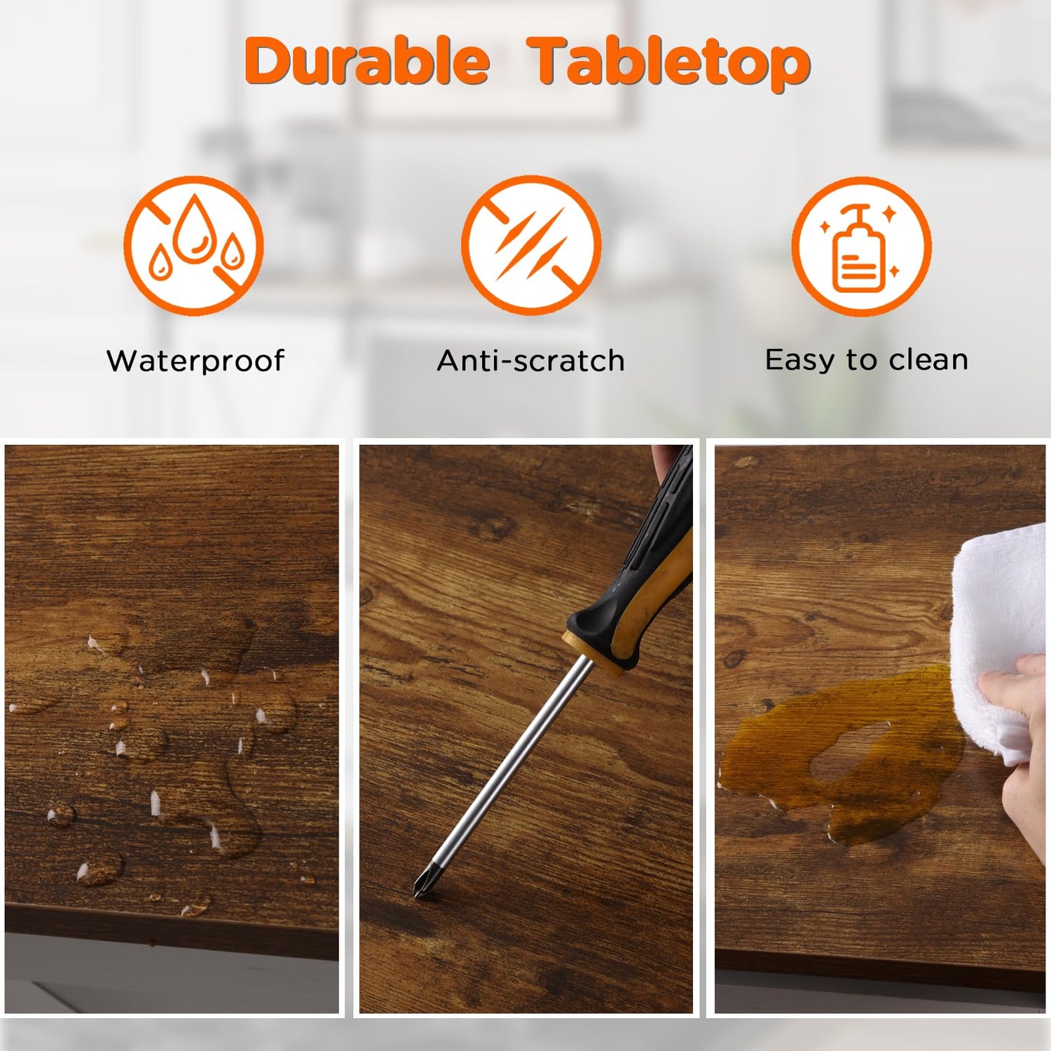 Built for strength and durability, the bar cabinet is constructed from high-quality particle board and supported by an engineered wood frame. This ensures exceptional sturdiness, with a robust top panel capable of supporting up to 600 pounds, making it a reliable addition to your kitchen or dining area.