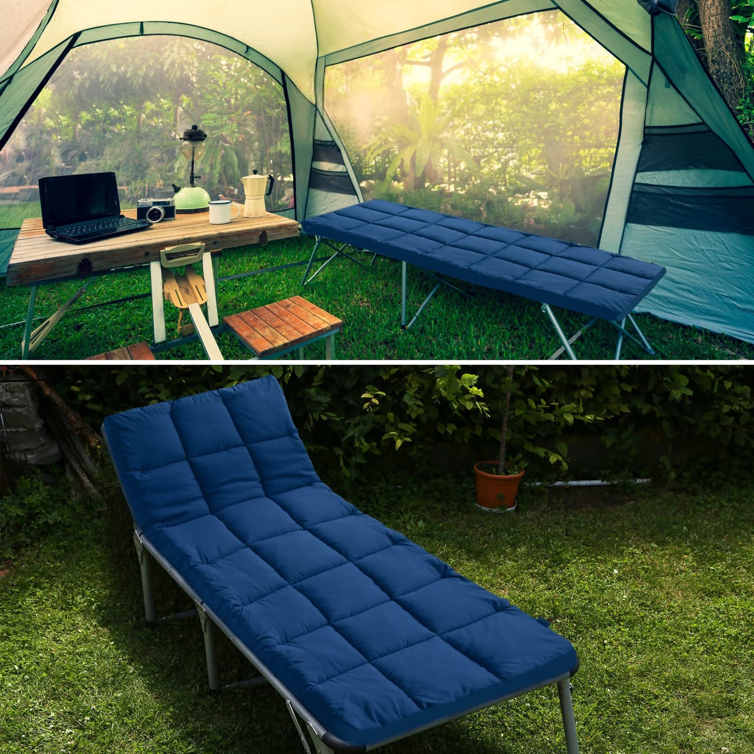 - Multiple-uses: The cot mattress topper can fit up to most camping cots, including flat cots, cots with elevated head, folding cots with pillow, lounge chaise chairs. The cot pads for camping also perfect for any outdoor activity like traveling or car camping for family, indoor use for house guest bed, floor mattress and kids play mat.