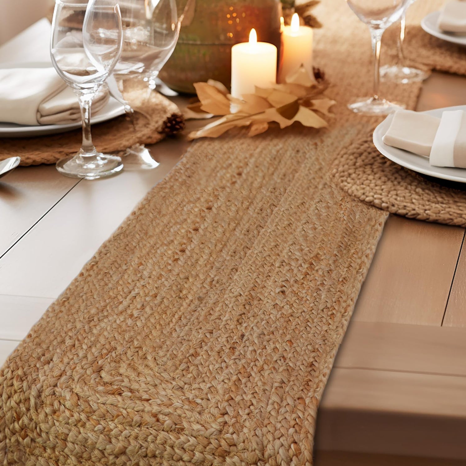 COTTON CRAFT Jute Braided Table Runner - Rustic Farmhouse Table Runner - Jute Kitchen Table Runner - Harvest Fall Thanksgiving Holiday Christmas Party Dining Tabletop Runner - 13x36 inches - Natural