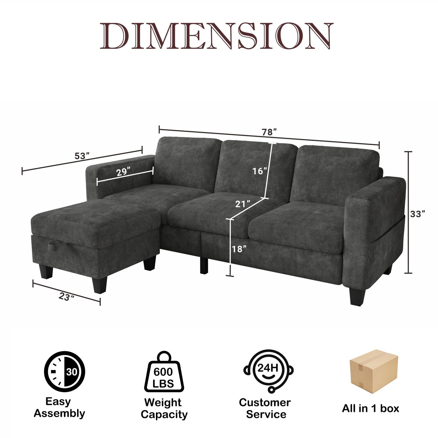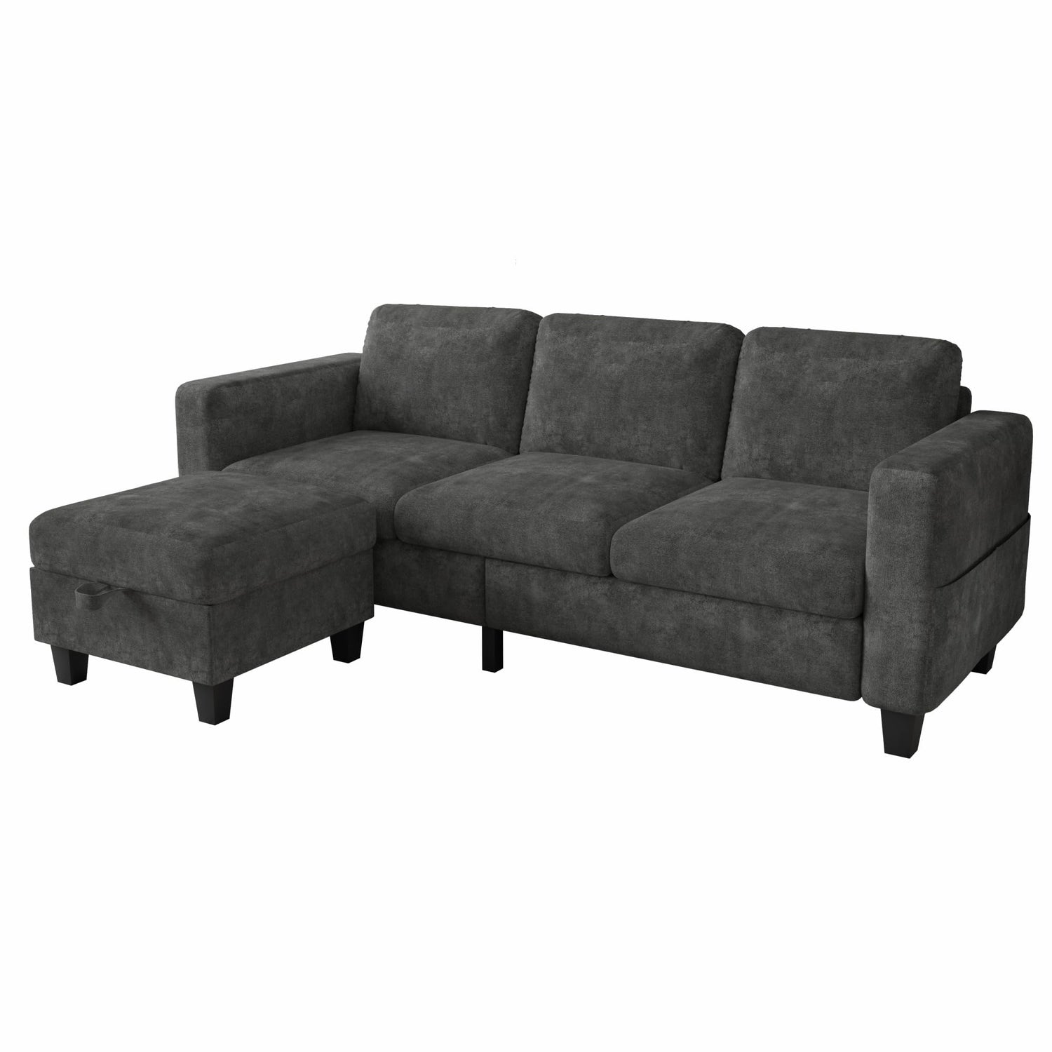 Couch for Living Room - Small Space Couches Sectional L-Shaped Sofa, 3 Seat Modern Couch, Sofas Convertible with Storage Ottoman for Small Space, Bedroom, Offices and Apartments - Grey