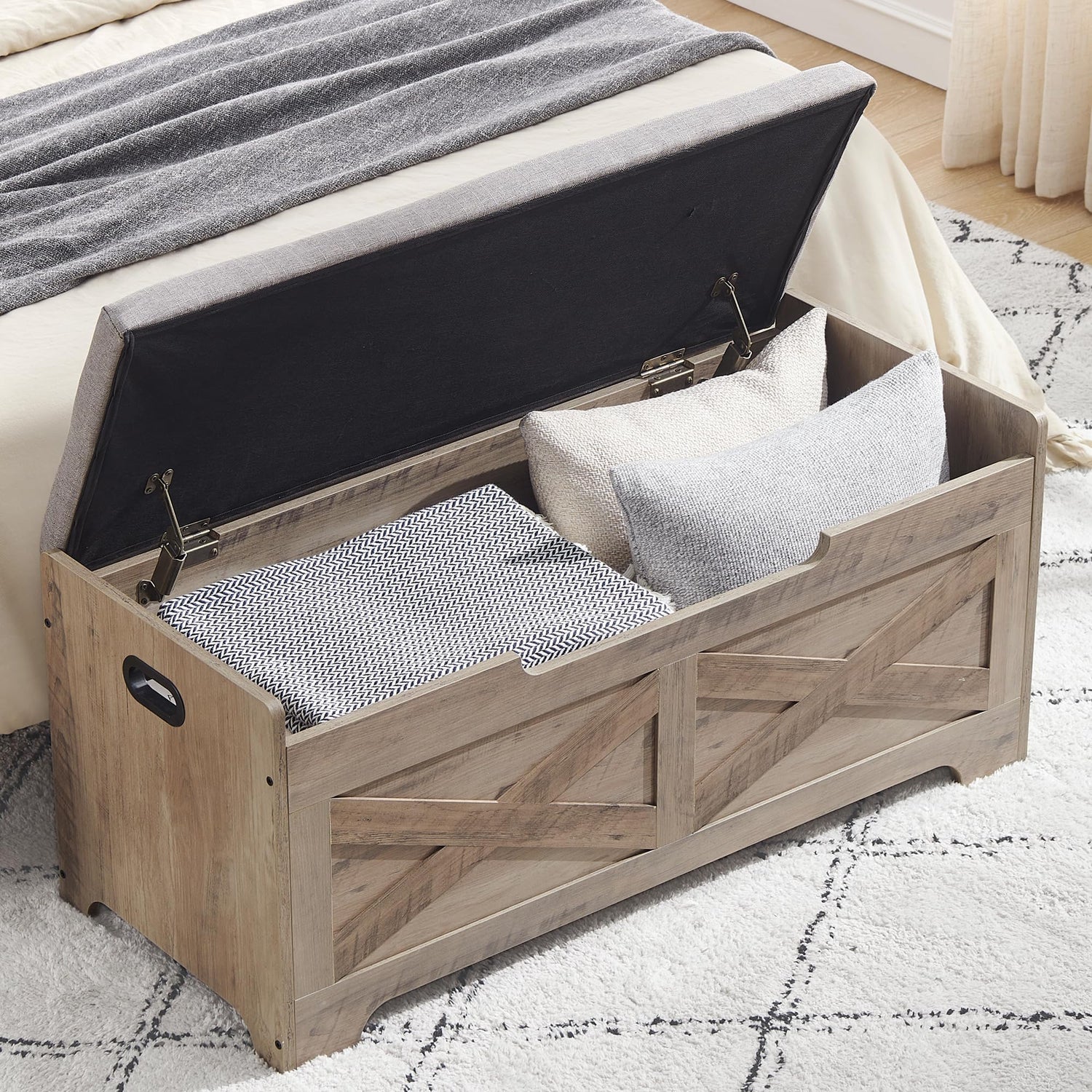 coucheta Storage Chest, Farmhouse Storage Trunk, Wooden Entryway Storage Bench with Safety Hinge and Lift-Top for Entryway, Bedroom, Living Room, Grey