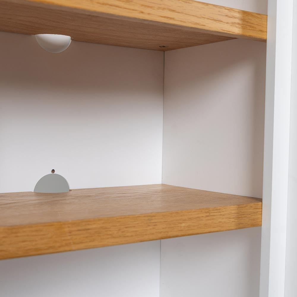 - WARM WALNUT SHELVING: Farmhouse inspired white designed bookcase with warm walnut finished wood shelves, creating a perfect blend of form and function.