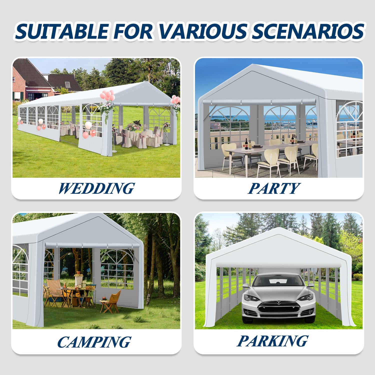 - 【MULTI-USAGE】Outdoor party tent offers you the perfect solution for every occasion. Camping shelter tent can be used as a multi-purpose shelter, Patio party tent can also be used as an entertaining party scene, whether you are hosting a wedding, birthday party or corporate event, COVERONICS metal party tent is perfect for it