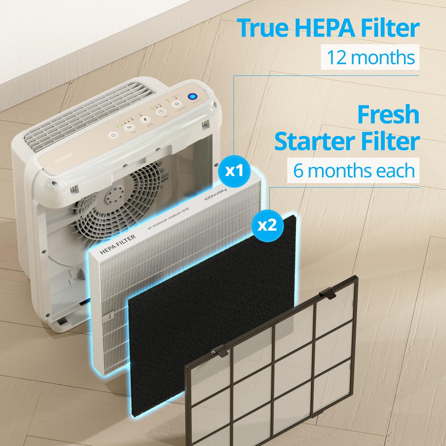 COWAY AP-1512HH & 200M Air Purifier Filter Replacement, Fresh Starter Pack, 2 Fresh Starter Deodorization Filters and 1 True HEPA Filter, 1 Pack, Black
