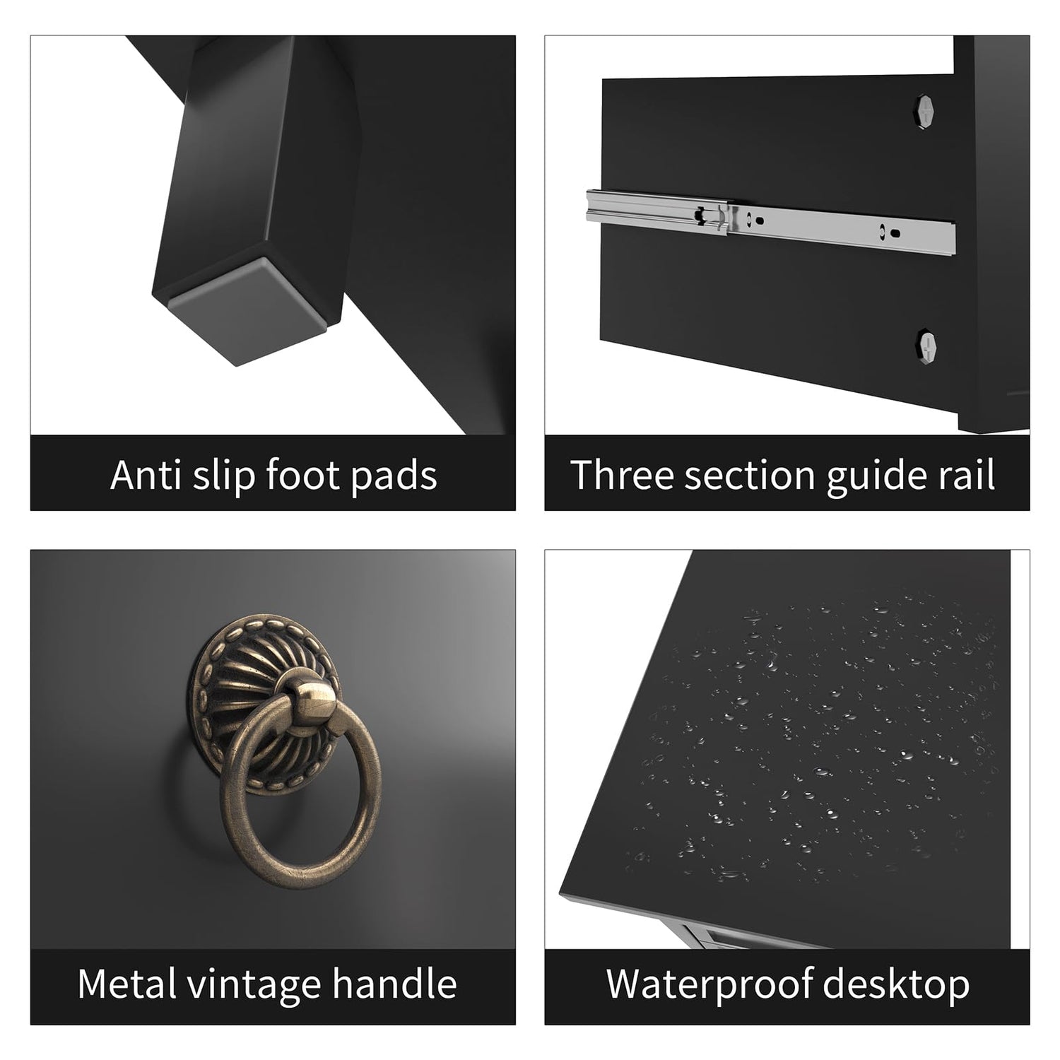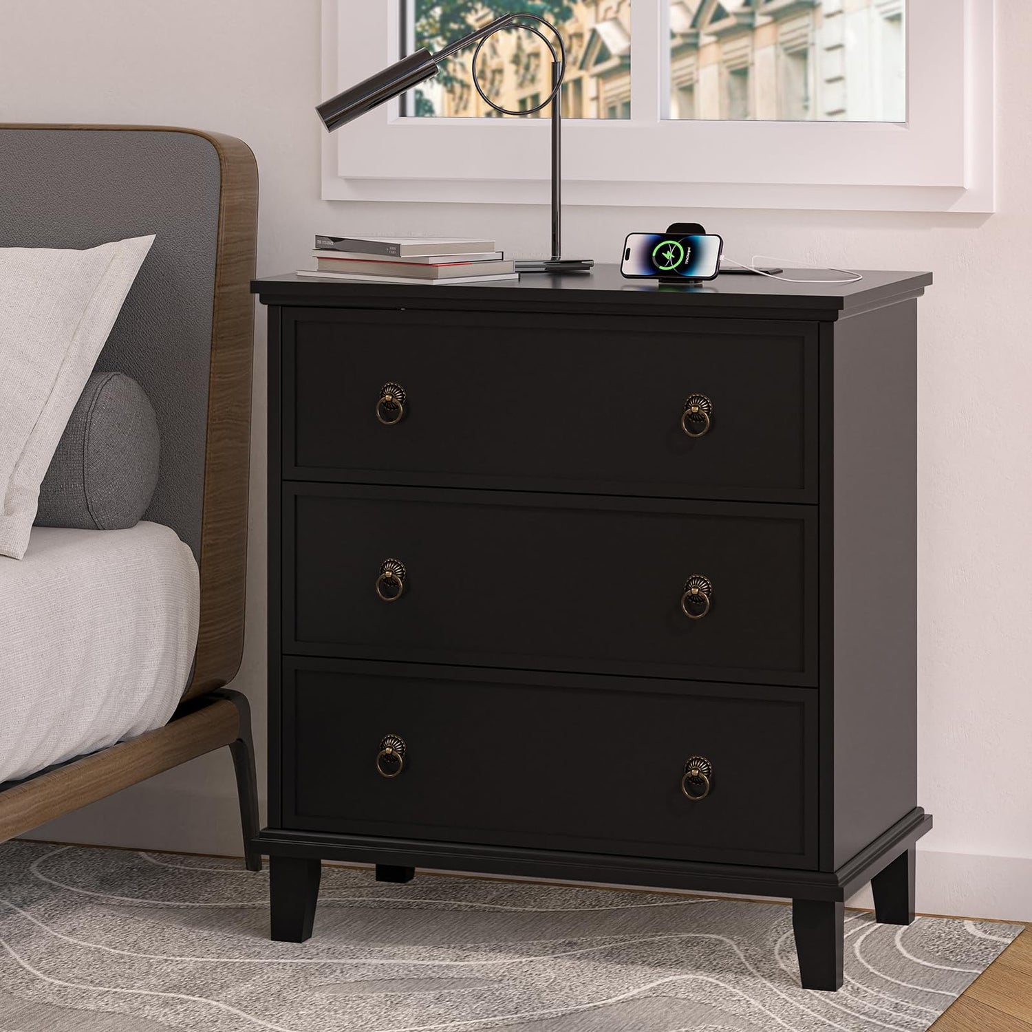 - 【Quality Materials - Strong and Durable】First, the black 3 drawer nightstand is made entirely of solid wood particle board with eco-friendly water-based paint. Secondly, the top table board and the bottom board are each made of 1" thick wooden boards, the material is very solid to improve the stability and load-bearing capacity of the nightstand, which can ensure its durability. Third, the drawers are made of metal three-section slides, which slide smoothly and quietly, making it easy to push and pull the drawers. Fourth, in addition, the metal anti-tipping device at the back of the nightstand can ensure the safety of use.