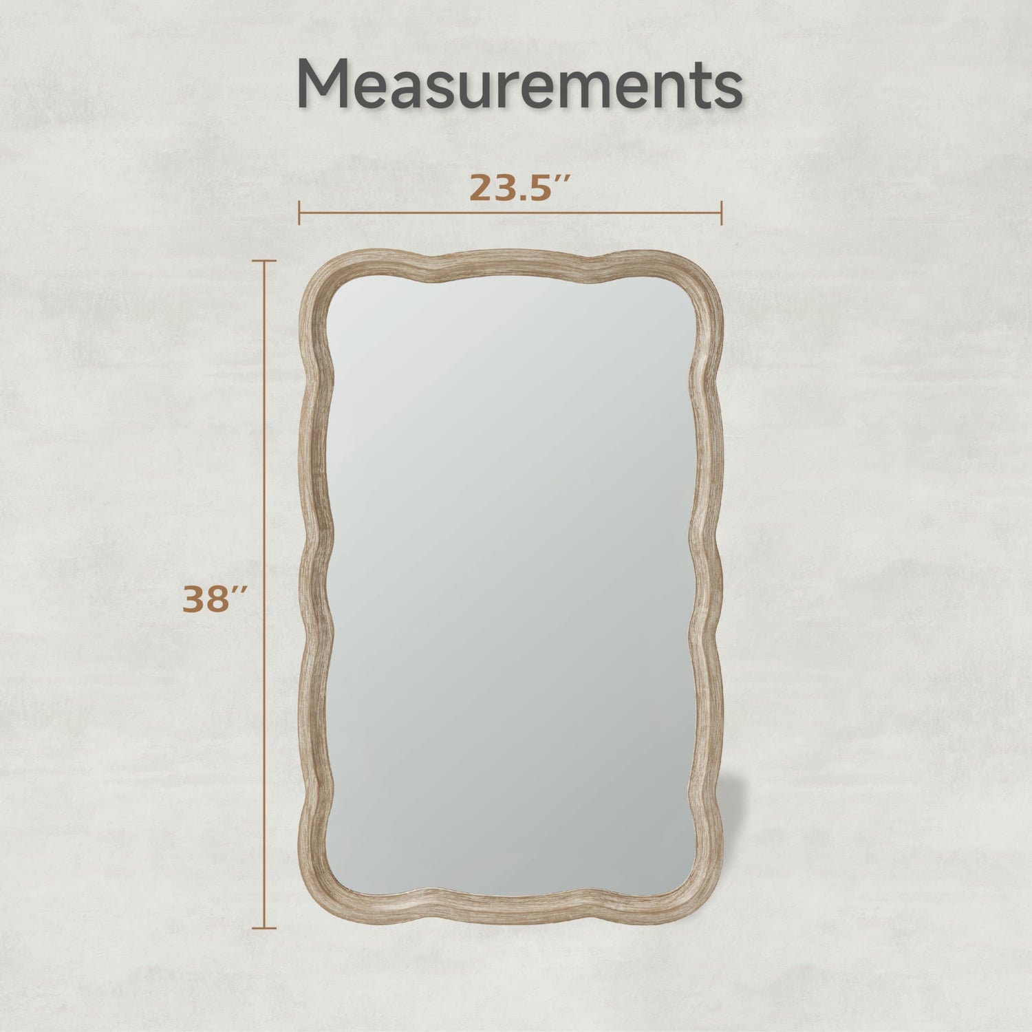 COZAYH Curved Wood Frame Accent Mirror, Farmhouse French Country Decorative Wall Mirror, Rectangle 23.5”L x 38”W, Natural