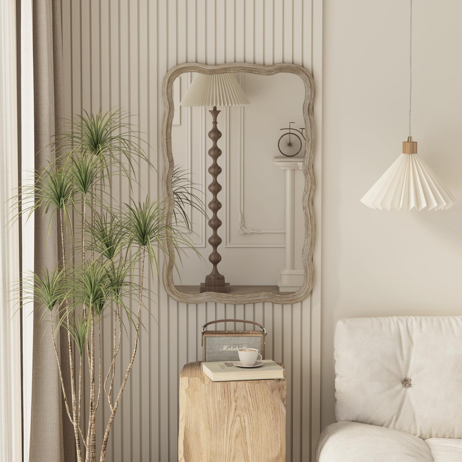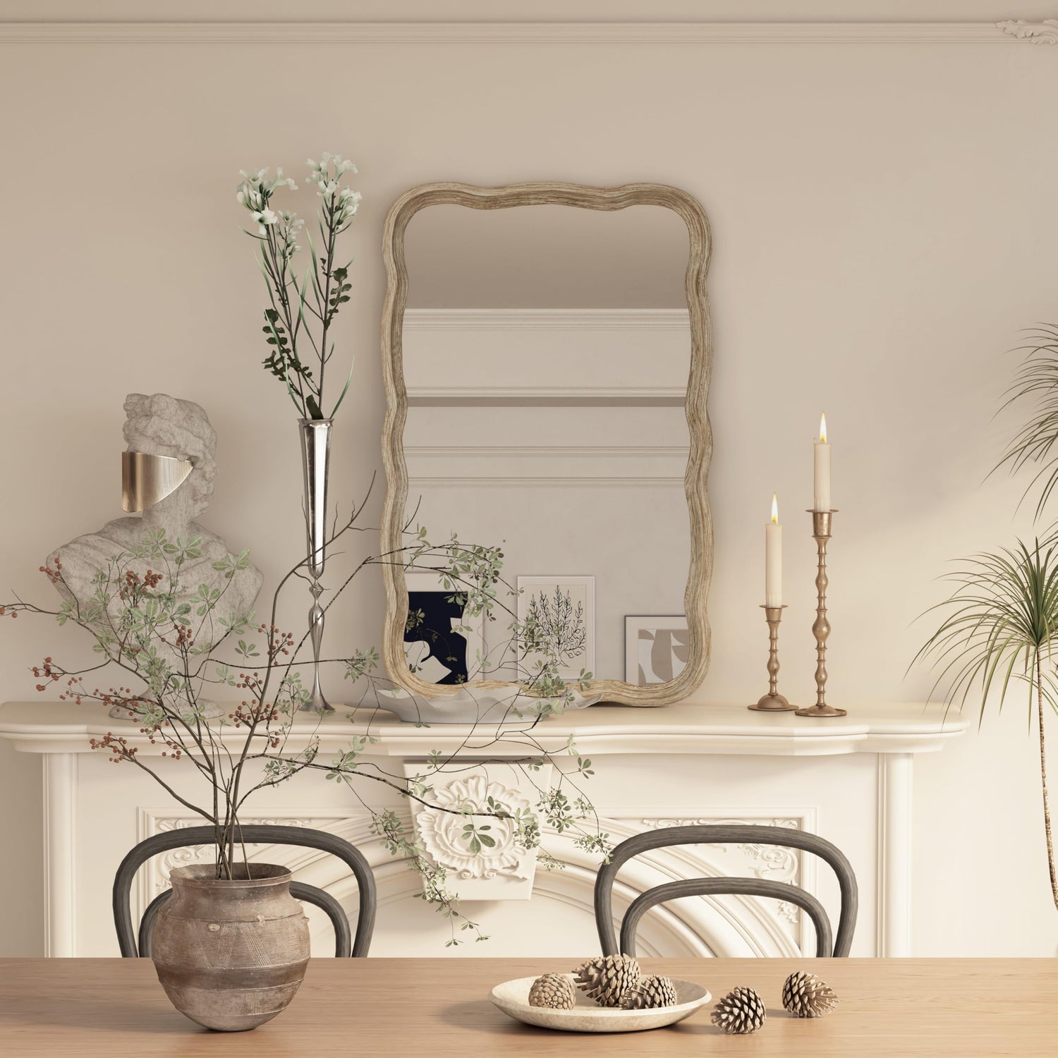 - ✅Add earthy, rustic style to your home with this rectangle, textured wall mirror with decorative curved frame, which features plenty of natural texture and distressed finish perfect for farmhouse, French country and boho decor.