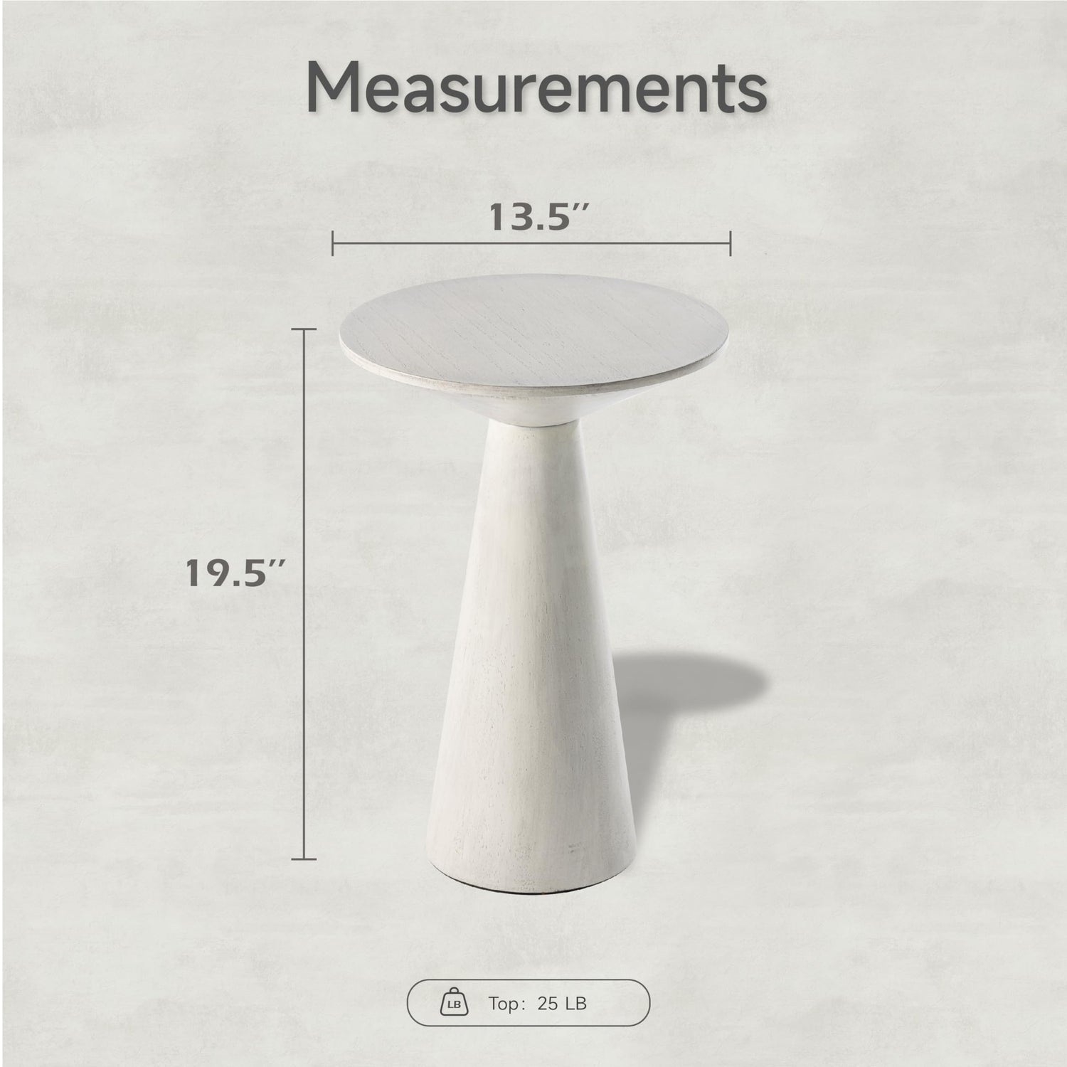 - ✅【Dimensions】Overall Dimensions: 13.5"D x13.5"W x 19.5"H; Table Top Dimensions: 13.5"D x13.5"Wx3"H; Base Size: 7.75"D x 7.75"W x 16.5"H