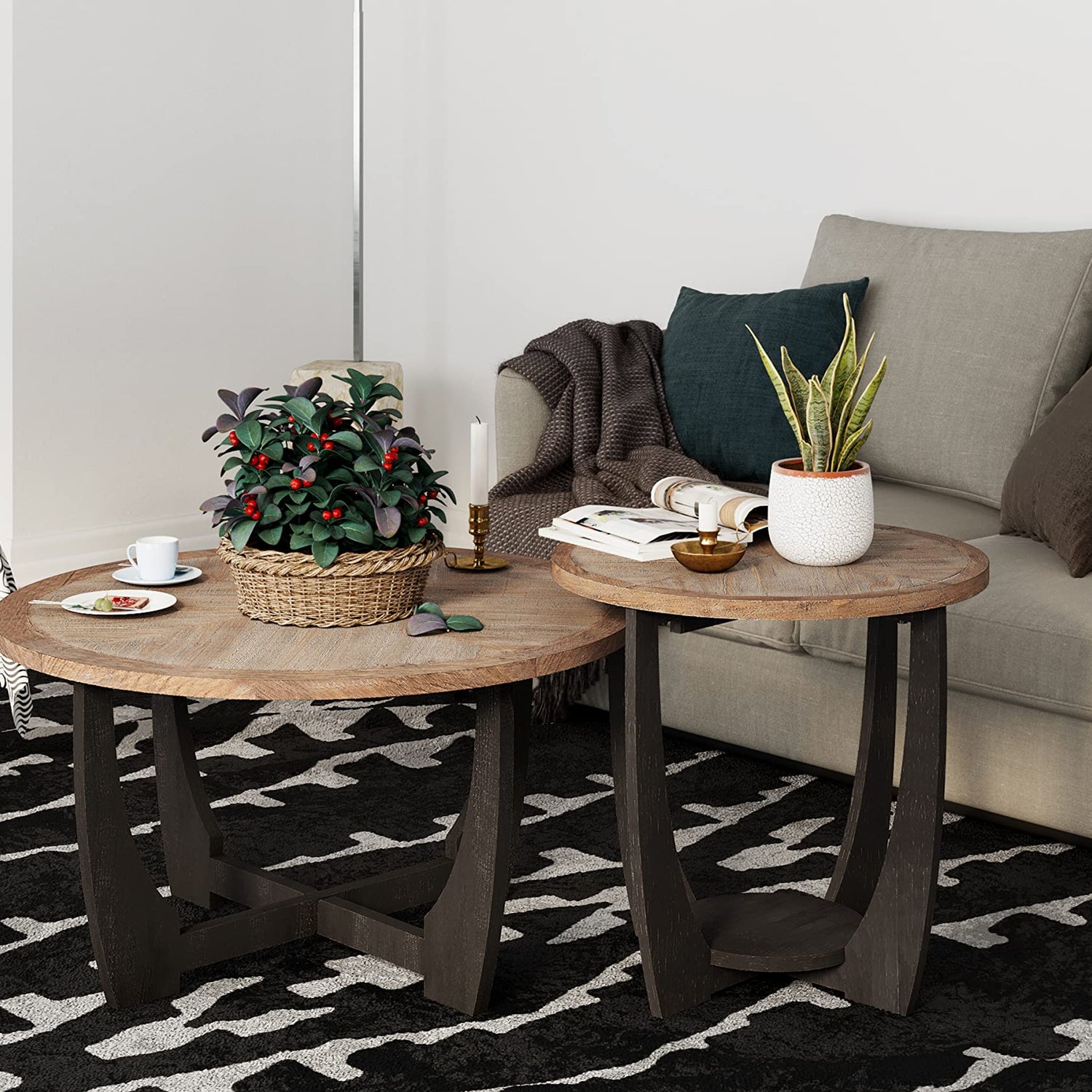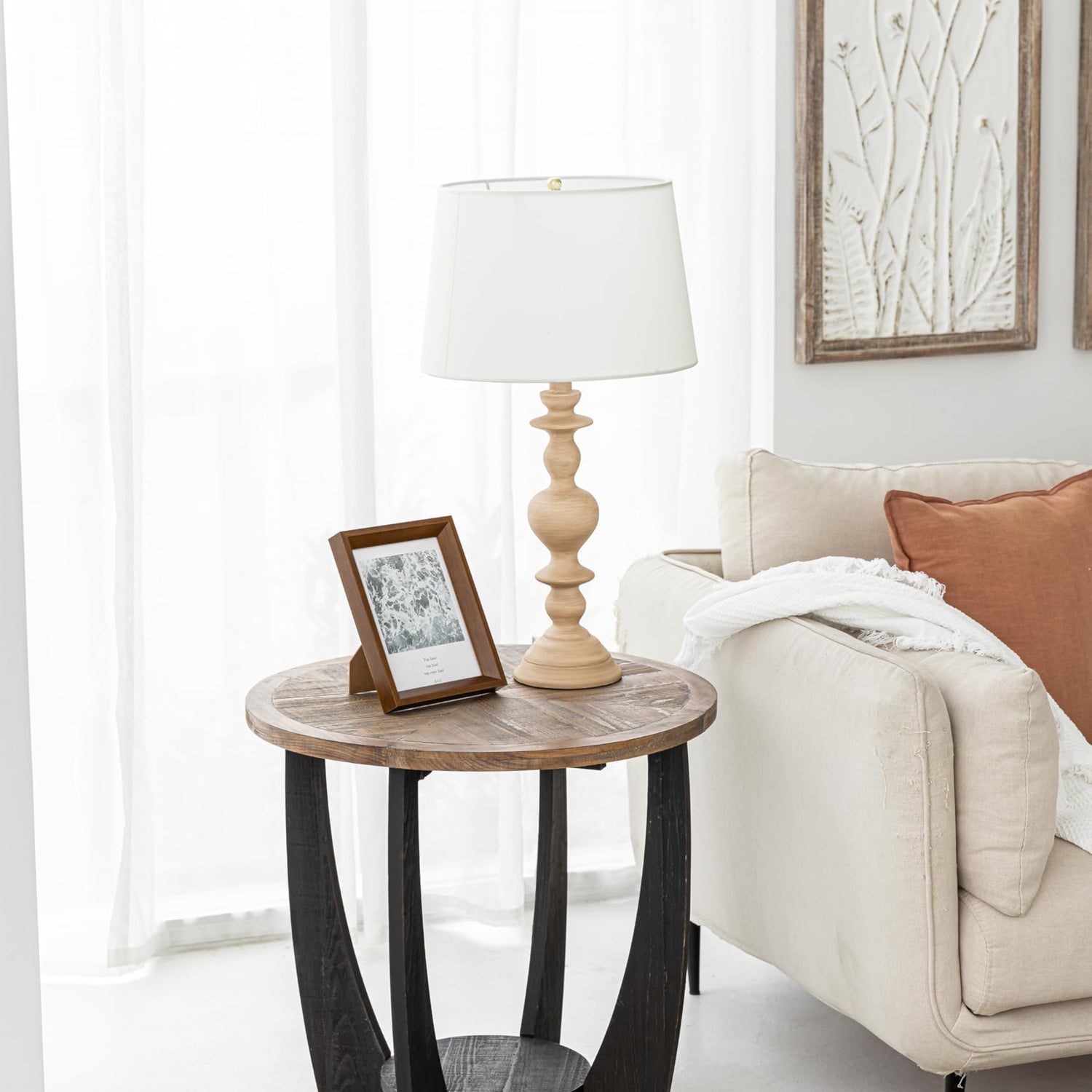 COZAYH Rustic Farmhouse End Table with Storage Shelf, French Country Accent Side Table for Family, Dinning or Living Room, Small Spaces, Modern, Round