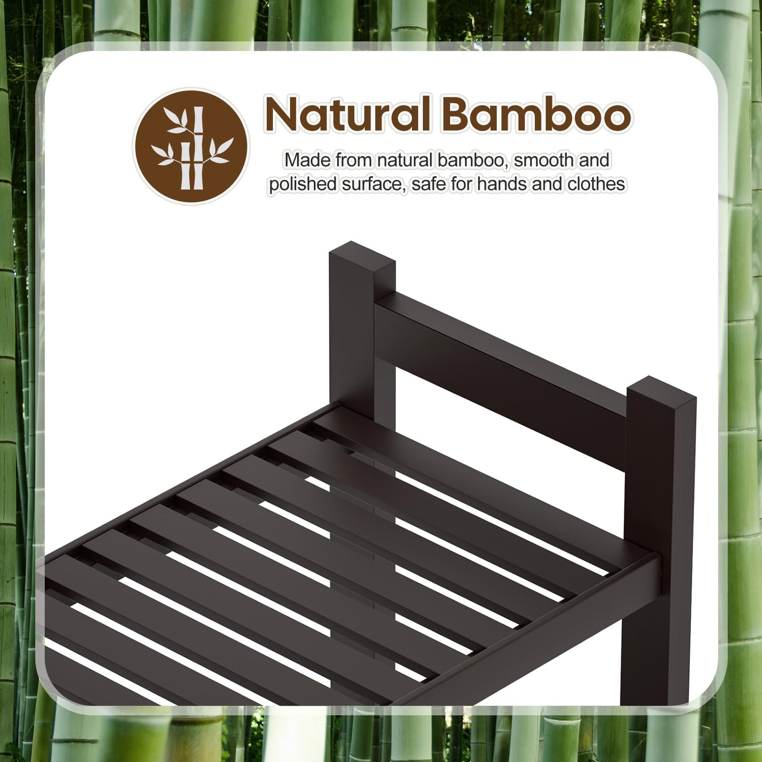 - Bamboo Material: This over the toilet storage shelf is made of bamboo, with a smooth and polished surface that is not easy to hurt hands or damage items. At the same time, the bamboo material is treated with PU paint, making it more sturdy and easy to clean. Each of the four shelves can bear a weight of 44.1 lbs, and the maximum load of the entire toilet rack is 176.4 lbs