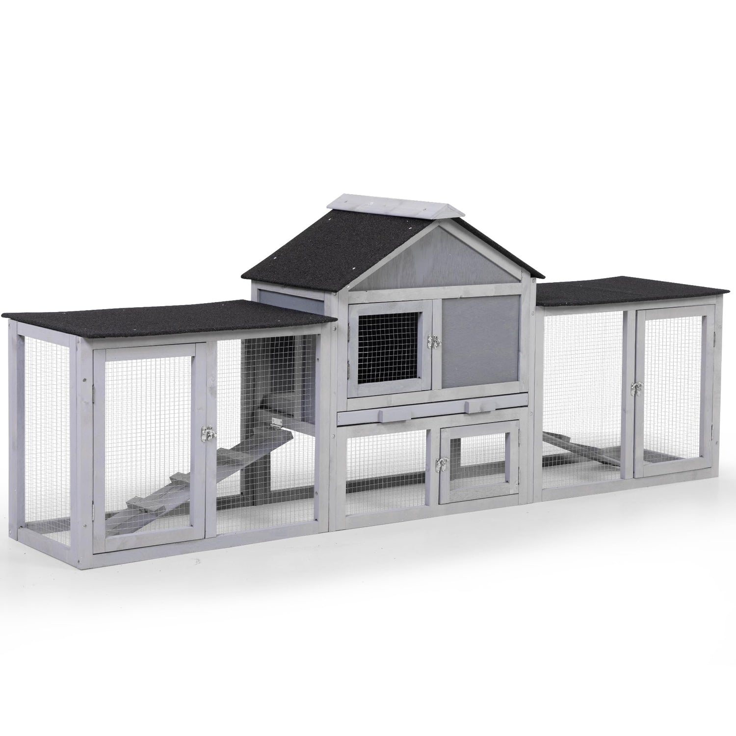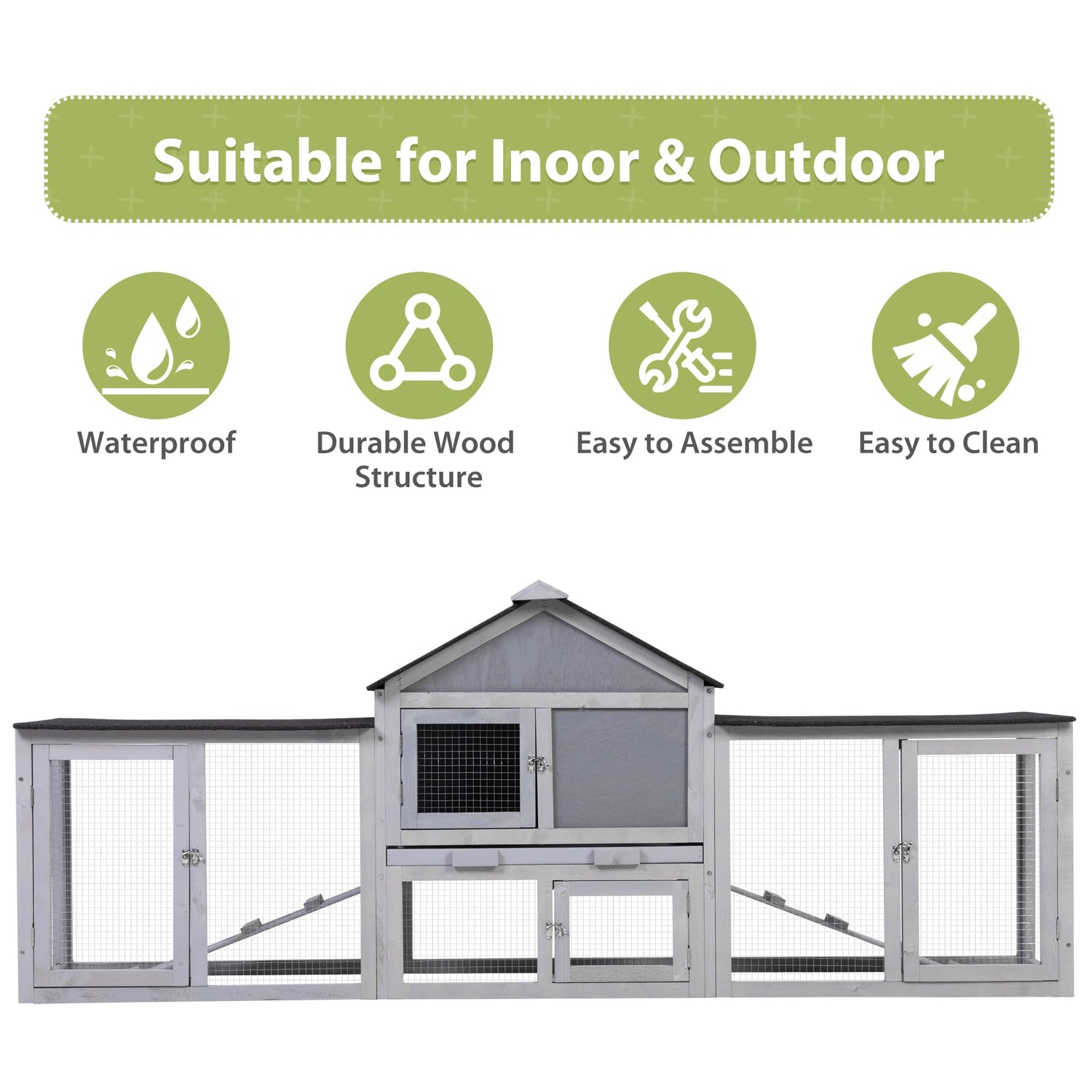 COZIWOW 2 Story 83”Wood Assembled Rabbit Hutch Indoor&Outdoor Bunny Cage with Double Runs and Weatherproof Roof, Guinea Pig Pet House for Small Animals(Gray)