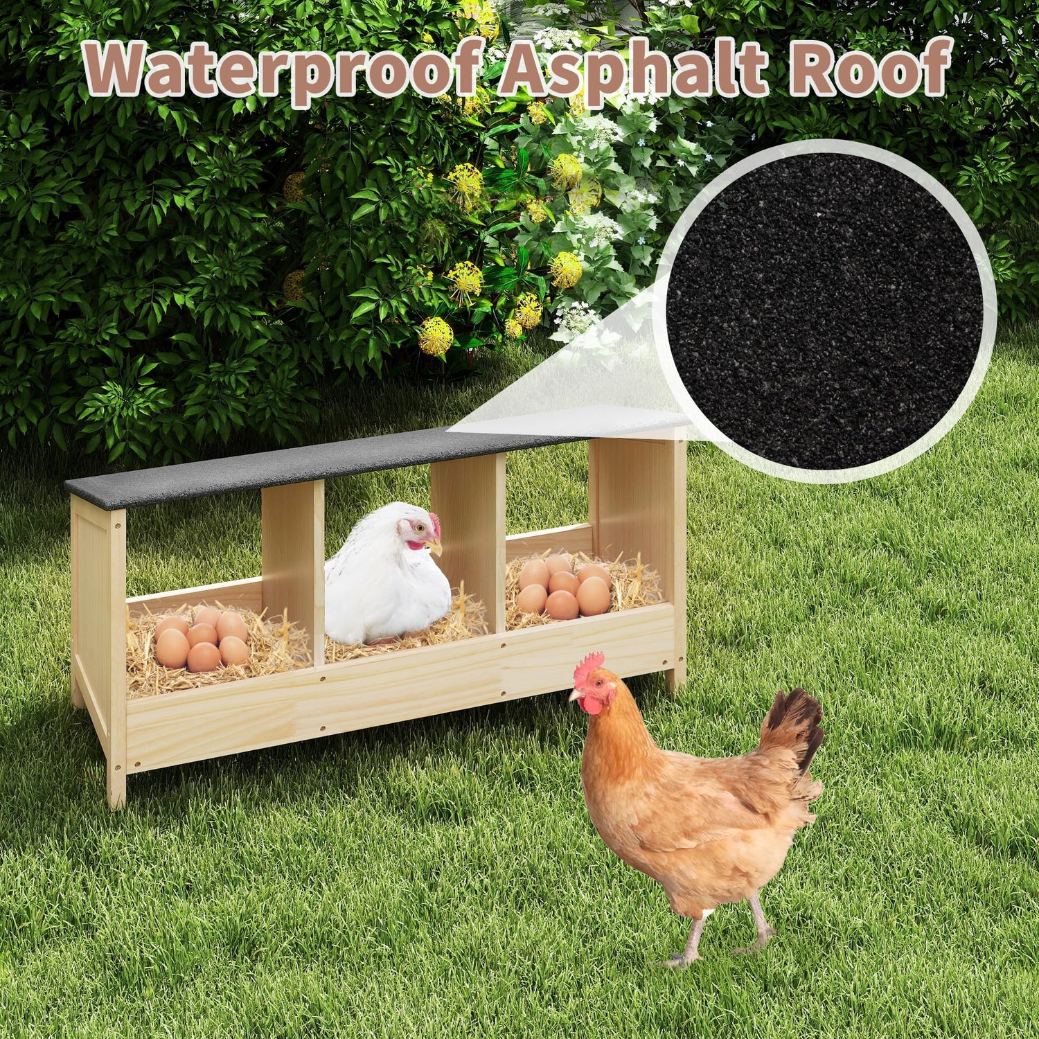- Asphalt Roof: The chicken Nesting Box features a waterproof asphalt roof ,moisture and sunproof, asphalt roof can withstand greater pressure and weight ,isn't easily deformed