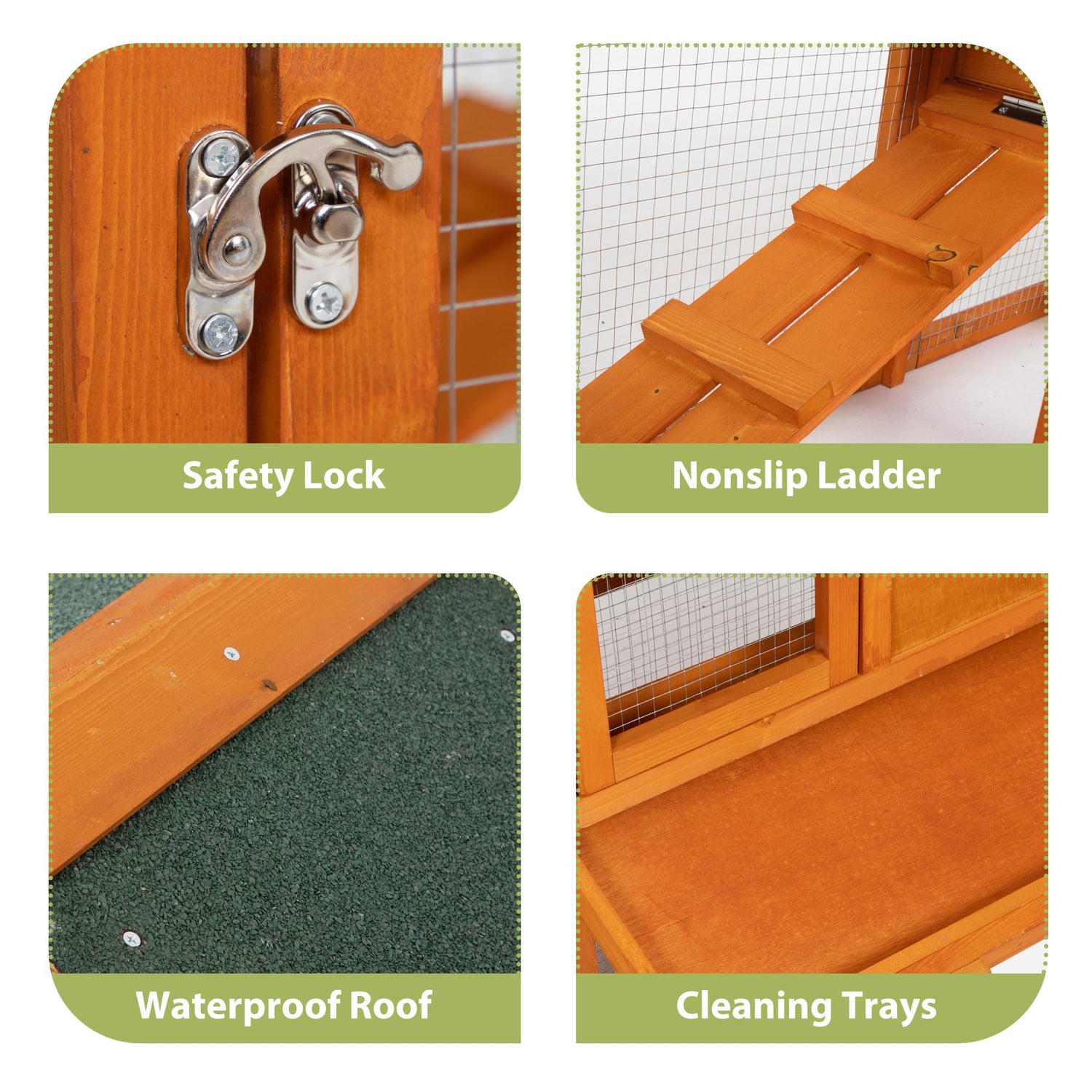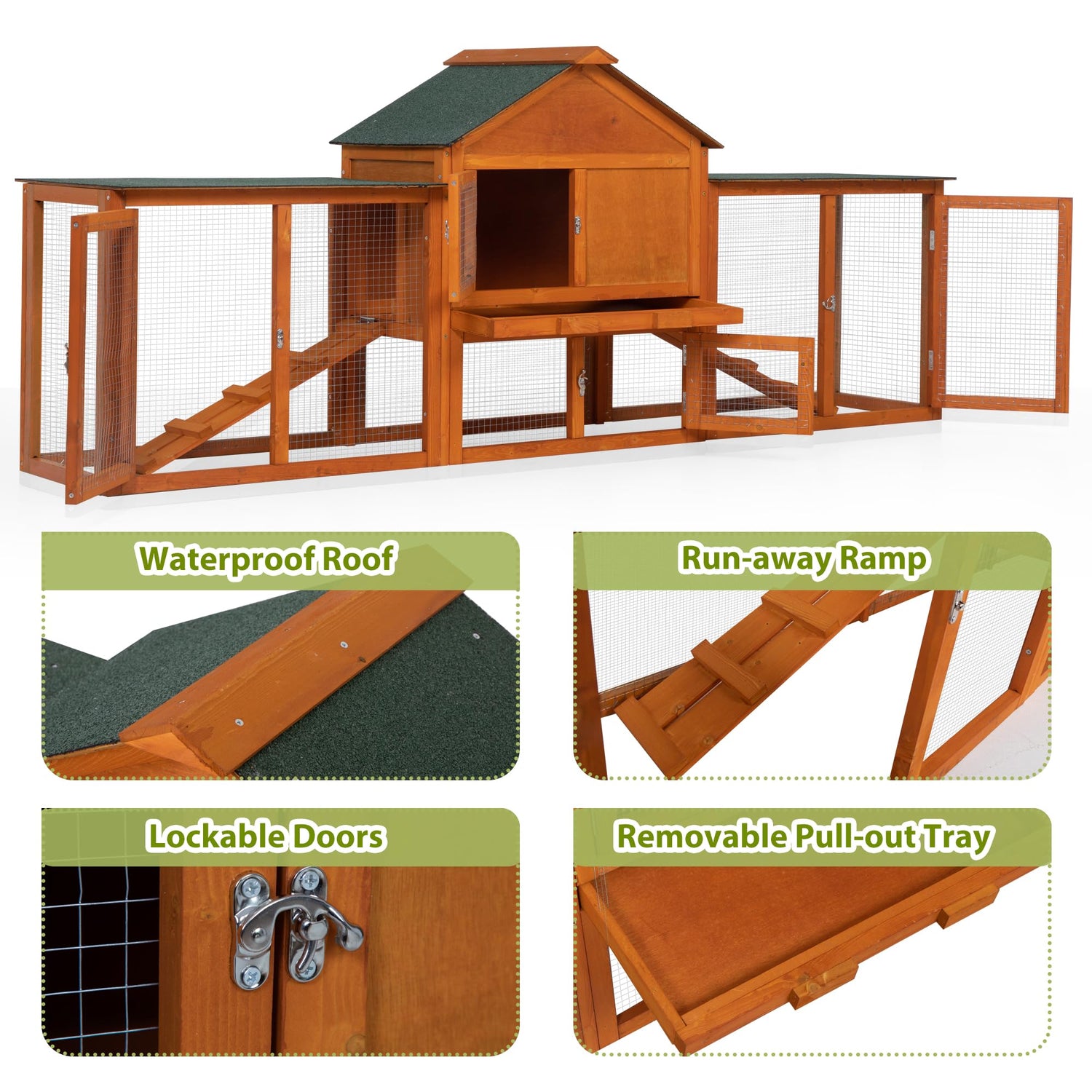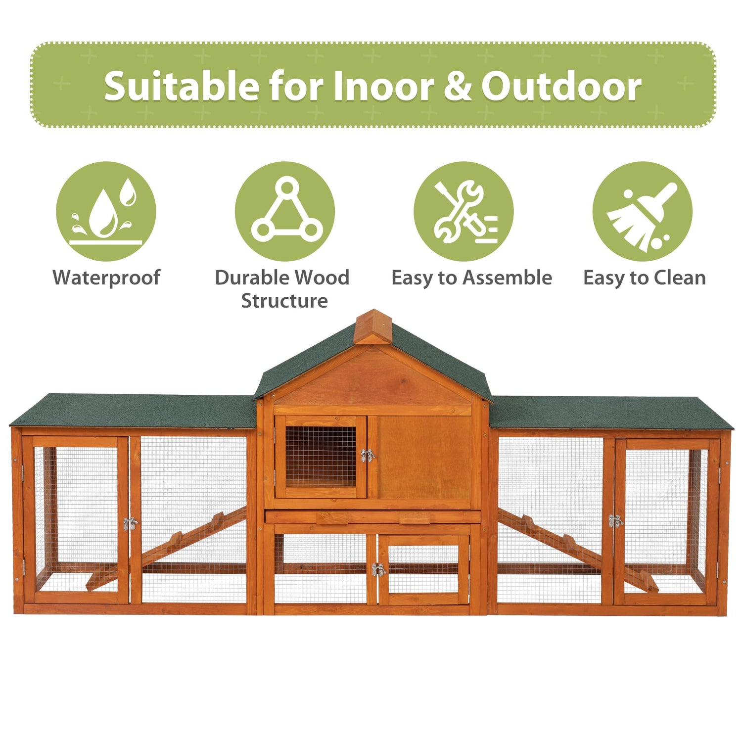 COZIWOW 83” Extra Large Wooden Rabbit Hutch Outdoor Easy to Assemble and Durable Rabbit Cage Bunny Hutch Indoor with Cleaning Tray & Waterproof Roof for Small and Medium Bunny Rabbit Chick (Orange)