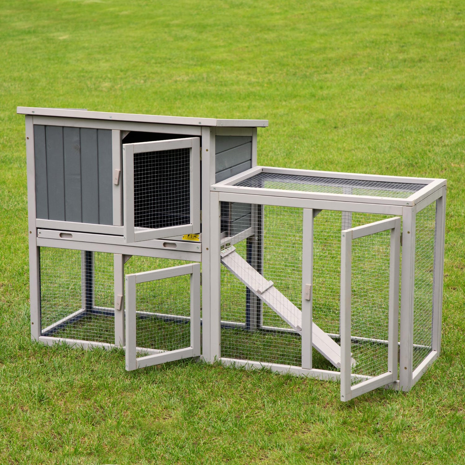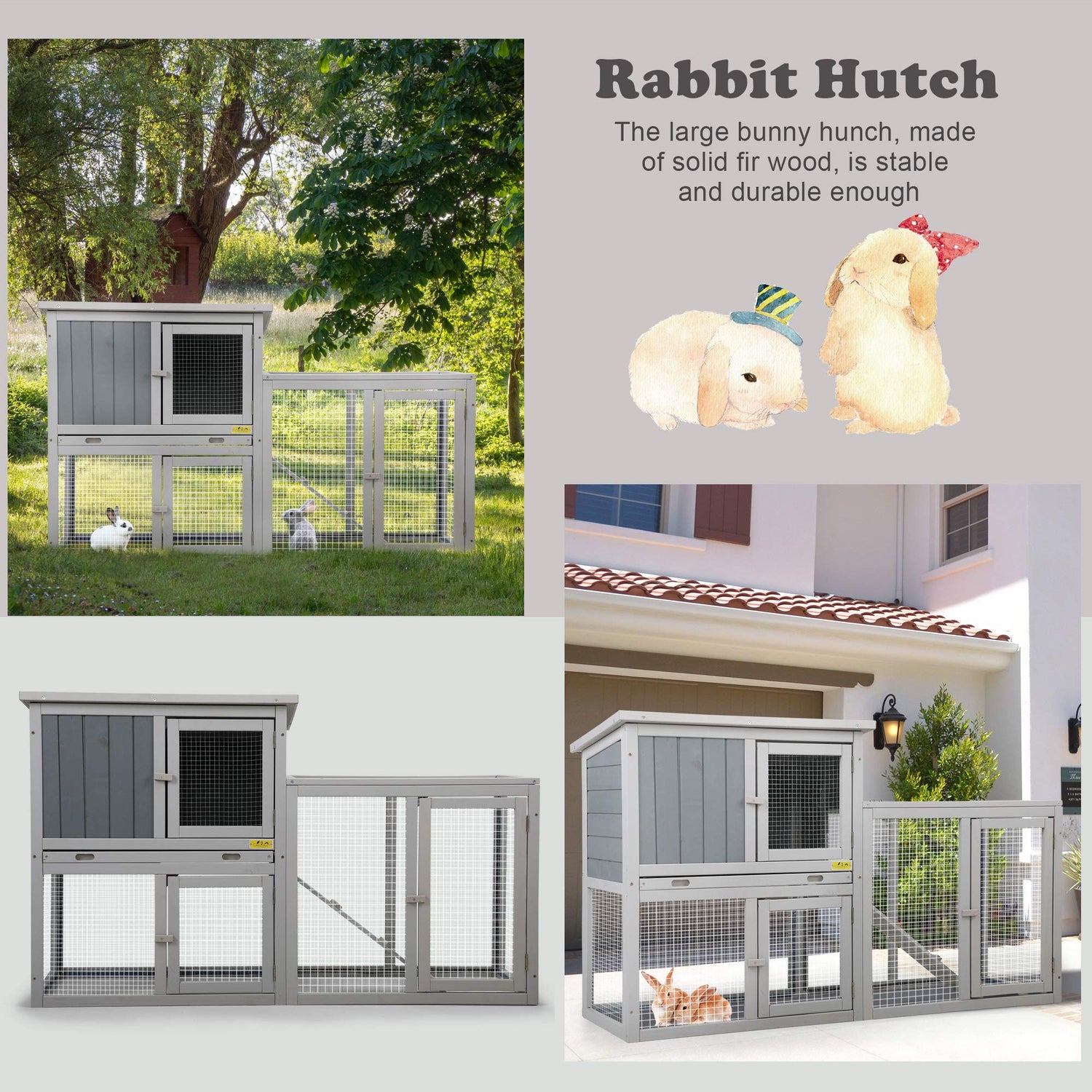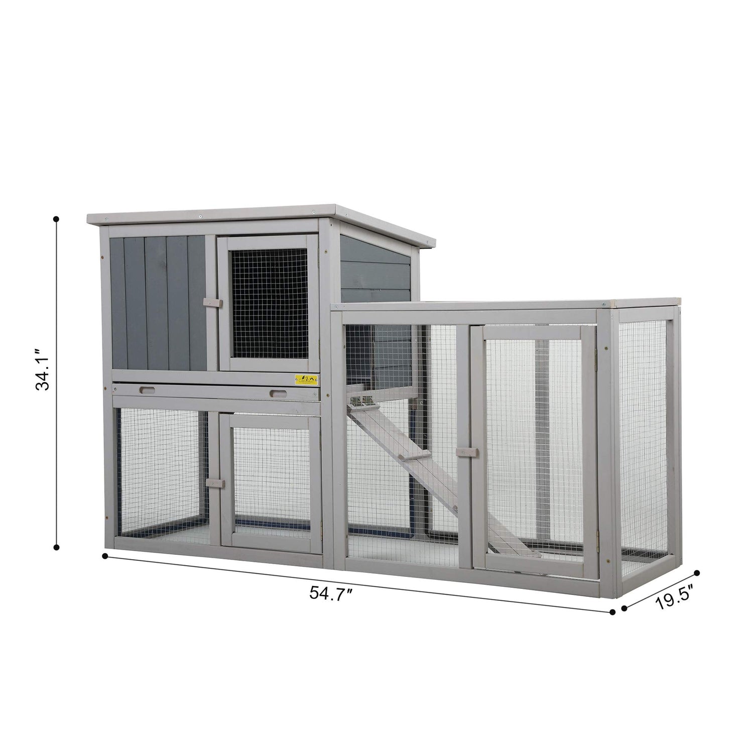 COZIWOW Assembled 54Inch Wooden Large Rabbit Hutch Indoor with Run Durable 2 Story Small Animal House Habitat, Pet Bunny Cage Outdoor with Cleaning Tray, for Bunny Chick Duck Hamster (Grey)
