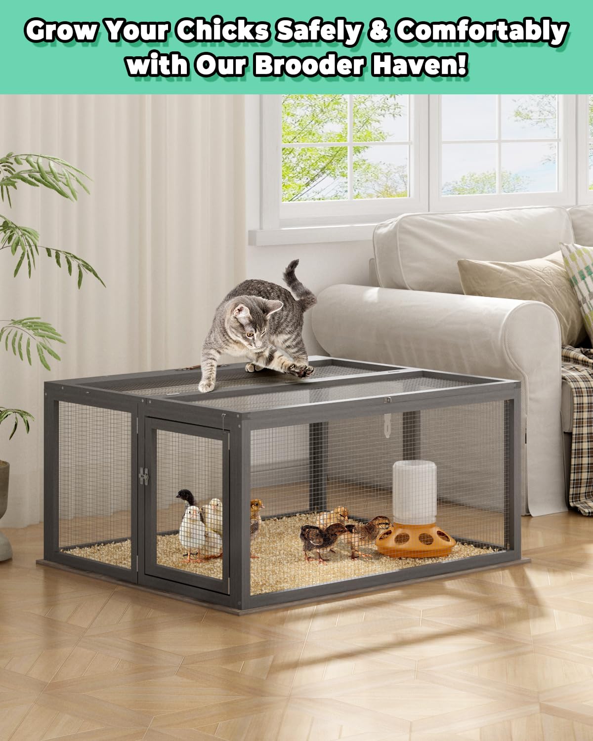 - AMPLE SPACE FOR COMFORT: This chicken coop measures 45.28'‘L x 37''W x 21.26''H, providing plenty of space to place chicken feeder and waterer kit. Easily accommodating 10-20 baby chicks or 2 to 4 adult chickens or rabbits, ensuring they have plenty of room to stretch their legs and stay active.