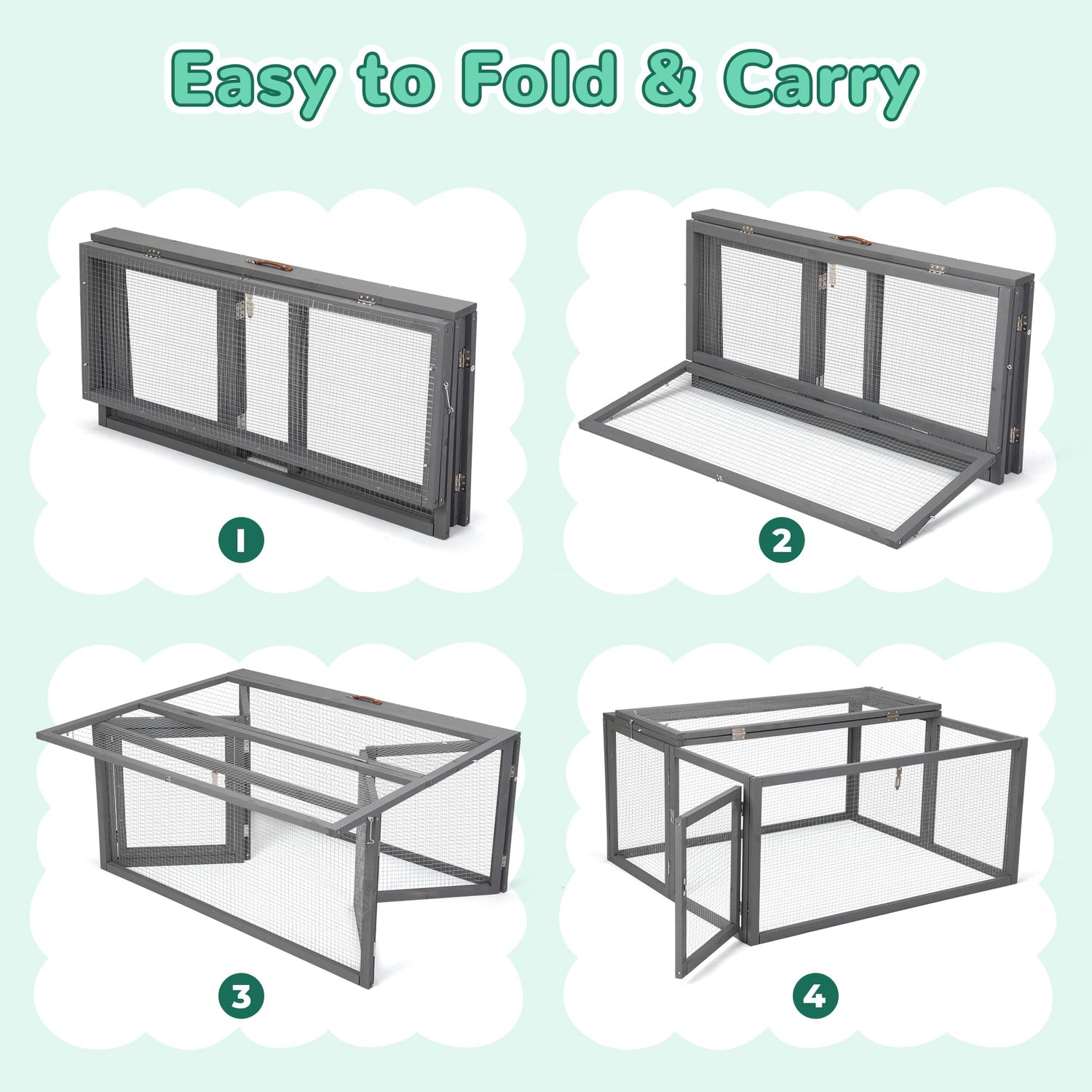 - PORTABLE CHICKEN COOP:Designed with a comfortable handle and weighing 17lbs, making it a breeze to move and set up wherever you need it. When not in use, it folds up like a suitcase, taking up minimal space for convenient storage.