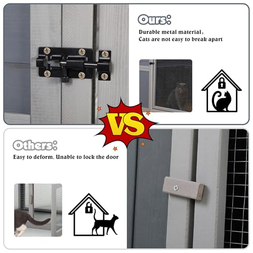 - 🐱【Outdoor Cat House Weatherproof】: The waterproof and weather resistant asphalt roof and rain cloth ensure that your pets are protected from sun and rain, so you don't have to worry about rainwater leakage. Equipped with upgraded and safer locks, cats can safely enjoy outdoor activities.