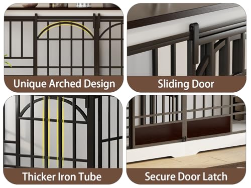 - 【MODERN FURNITURE-STYLE DOG CRATE 】– Featuring a clean white-and-brown color combination and a sleek, furniture-inspired silhouette, this dog crate blends seamlessly into modern living rooms or bedrooms. The wide, flat tabletop offers practical space for décor, books, or daily essentials, allowing it to function as both a pet enclosure and a stylish piece of home furniture.v