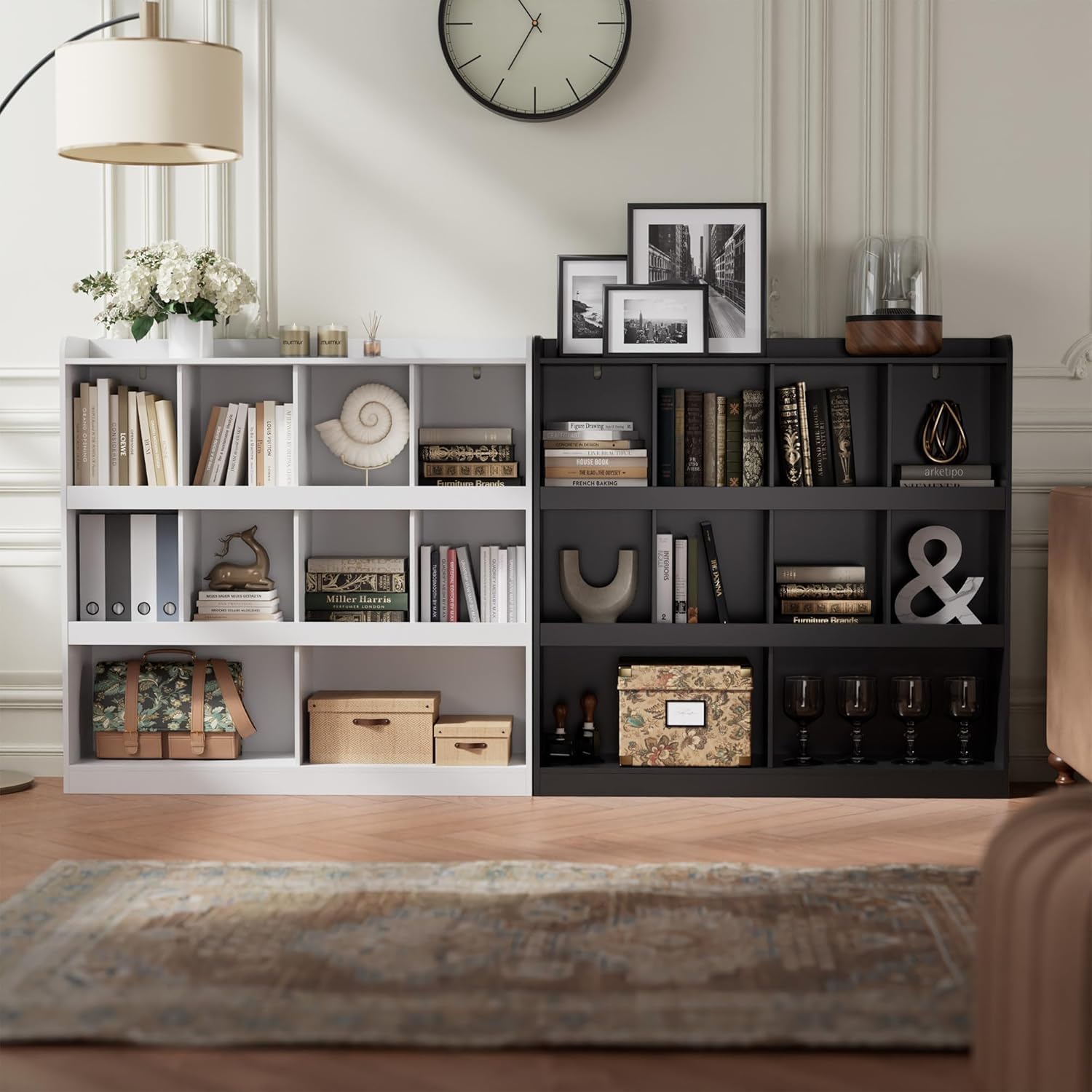 - Larger 3 Tier Bookshelf:Our modern bookcase compared with other short bookshelf, the wide bookshelf dimensions are 48.4"L x 11.8"W x 47.2"H.In addition,the square cute bookshelf design also makes it very suitable for toddler bookcase and toy storage