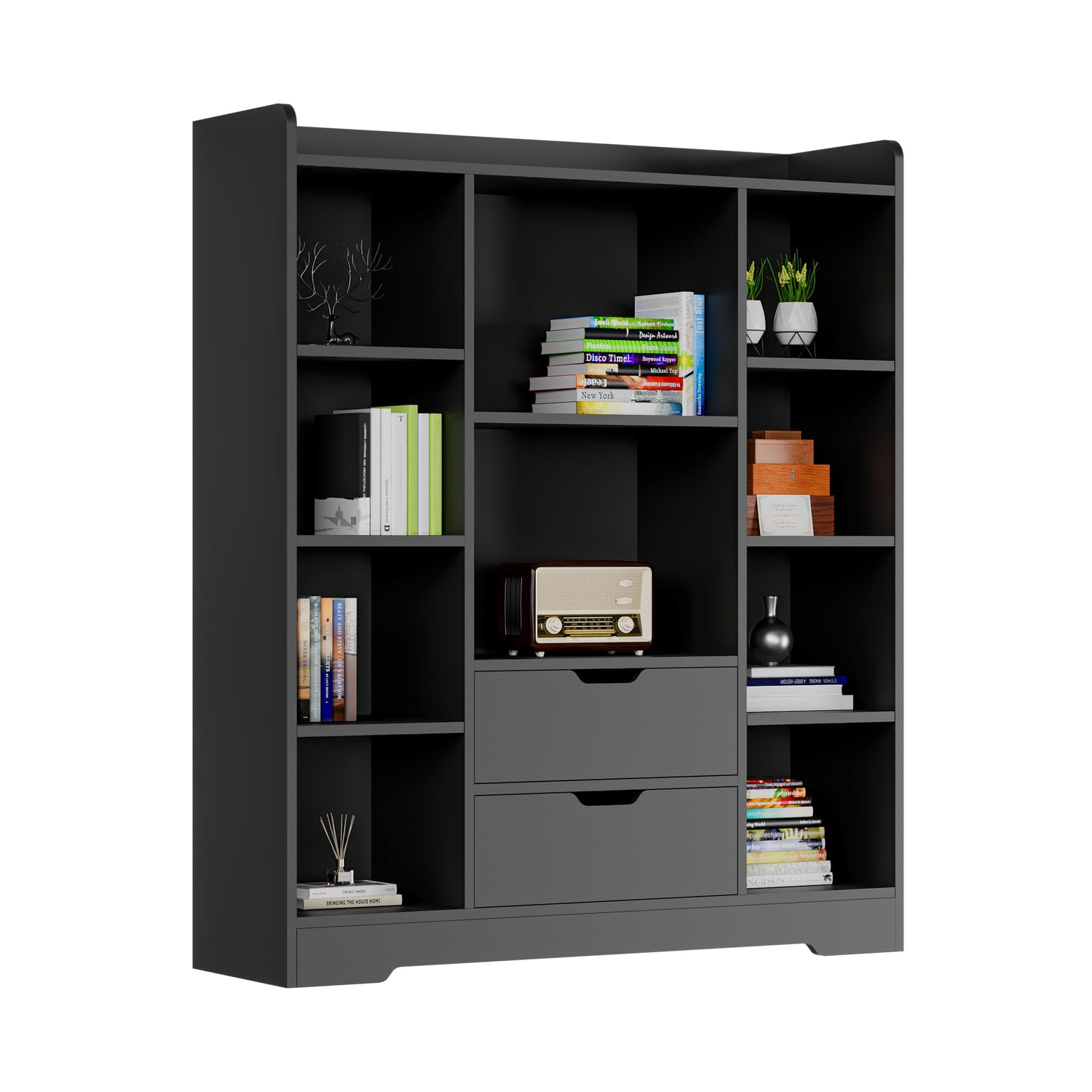 Cozy Castle Black Bookshelf, 4-Tier Open Shelf Bookcase with 2 Drawers and 10 Cubes, Wood Cube Storage Organizer Shelf for Bedroom, Living Room, 39.4" W X 47.2" H