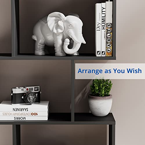 Transform your space with the S-Shaped Black Geometric 5-Tier Bookcase from Cozy Castle, an elegant and modern solution for both storage and style. This multipurpose bookshelf is designed to offer a unique touch to any room, be it your living room, bedroom, office, or even your kitchen.