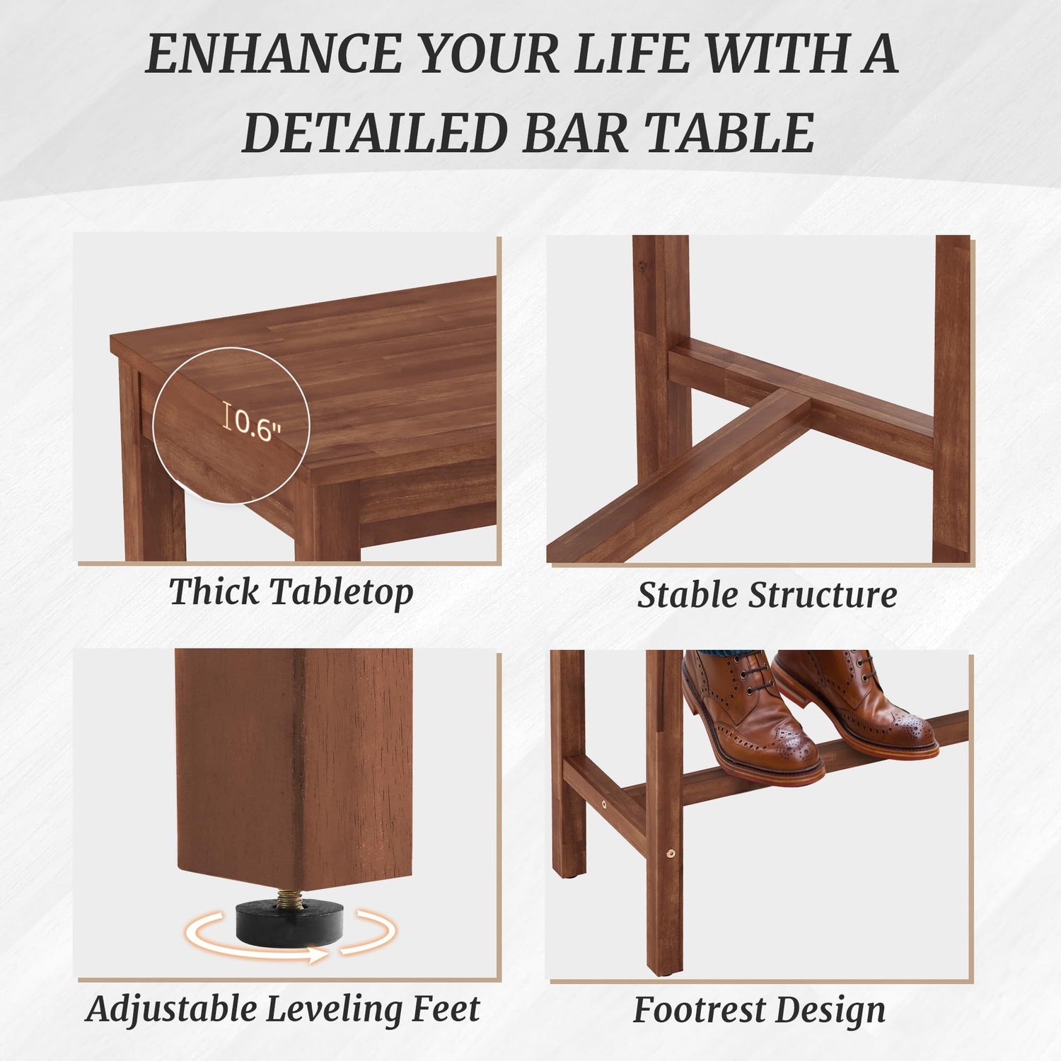 Cozyman 45-Inch Acacia Wood Counter Bar Table – Stylish Teak Brown High Top for Indoor & Outdoor Use