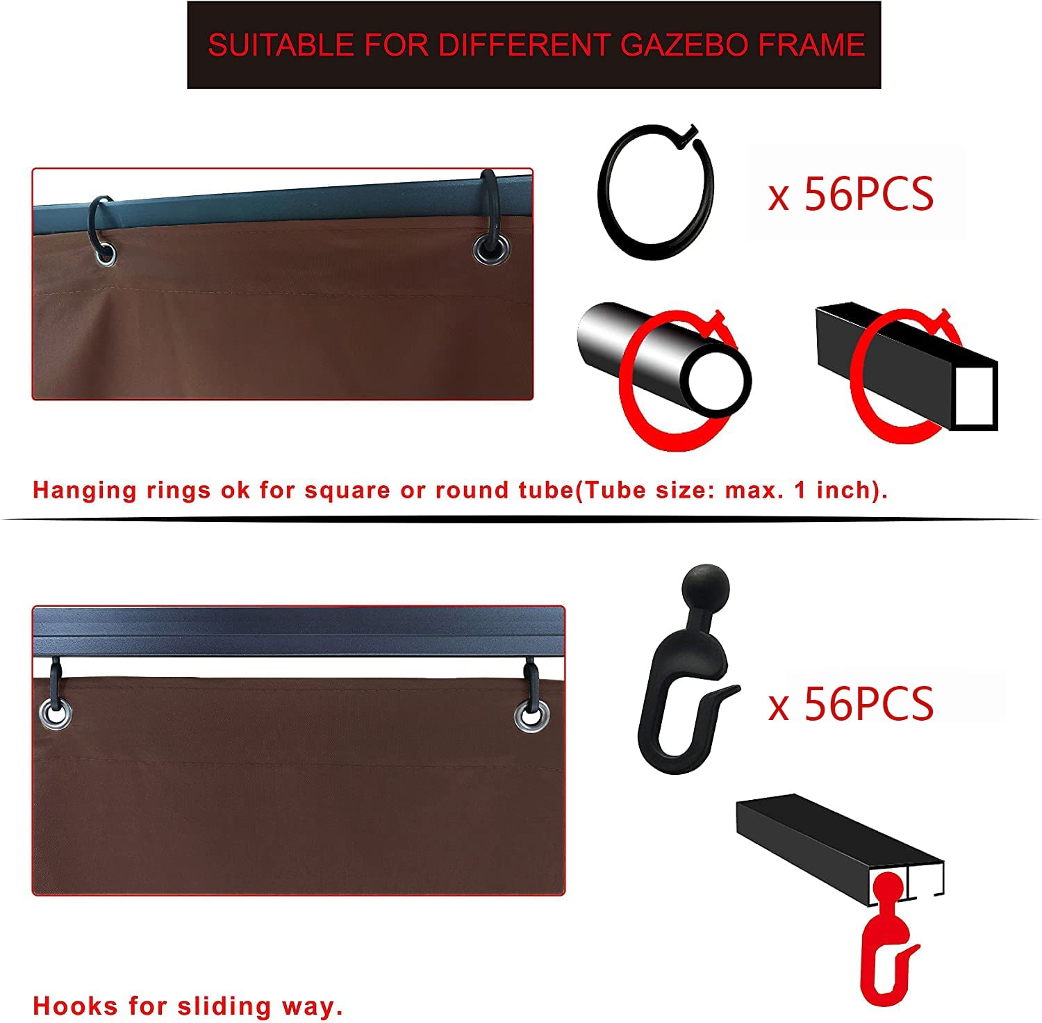- FUNCTIONS - 10’ x 13’ 4 panels universal gazebo curtain,The curtains can fit most 10' x 13' gazebos. Please do the measurements of your gazebo and make sure that our product will fit it.