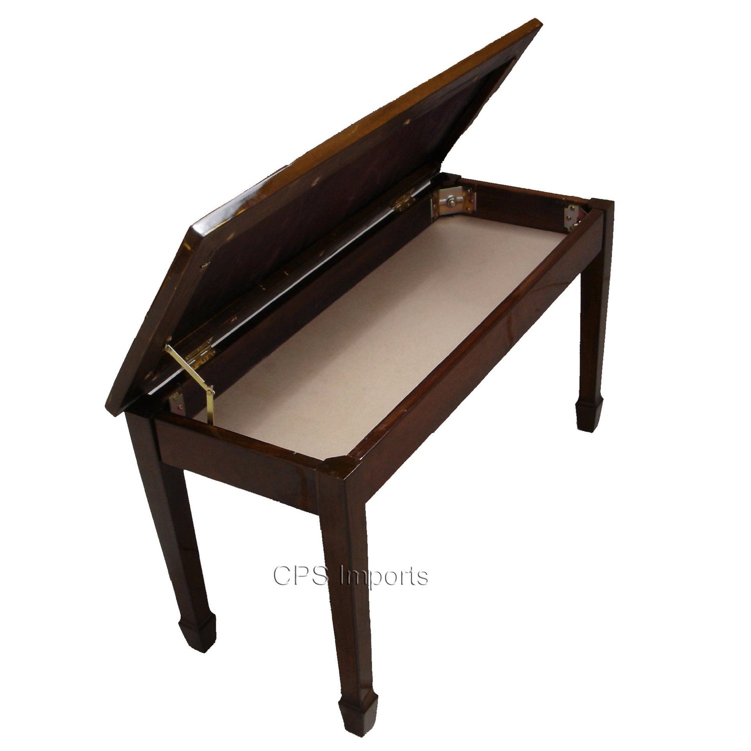 CPS Imports Genuine Leather Walnut Concert Grand Duet Piano Bench Stool with Music Storage