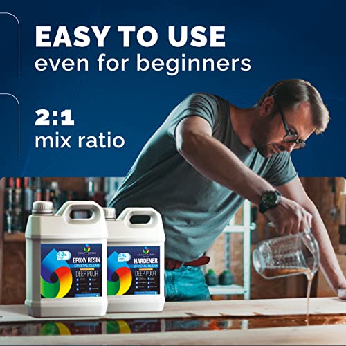 - 💎 DEEP POUR 2"+ THICK - Transform your art and craft projects with stunning depth and clarity using Craft Resin Deep Pour . Premium clear epoxy resin and hardener allow you to create beautiful pieces with a glass-like finish and no yellowing over time. Popular for DIY art, tabletop coating, wood, mold casting, river table.