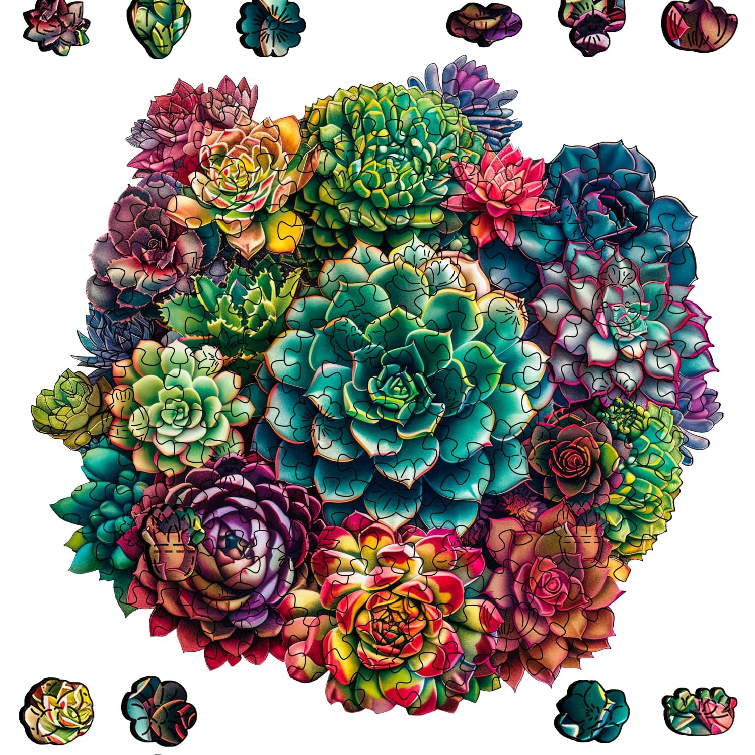 Crafthub Flowers Wooden Puzzles for Adults – A3 Mandala Succulent Plants with 152 Pieces Wood Puzzles – Jigsaw Puzzles with Unique Animal Shapes – 10.8" x 10.3"