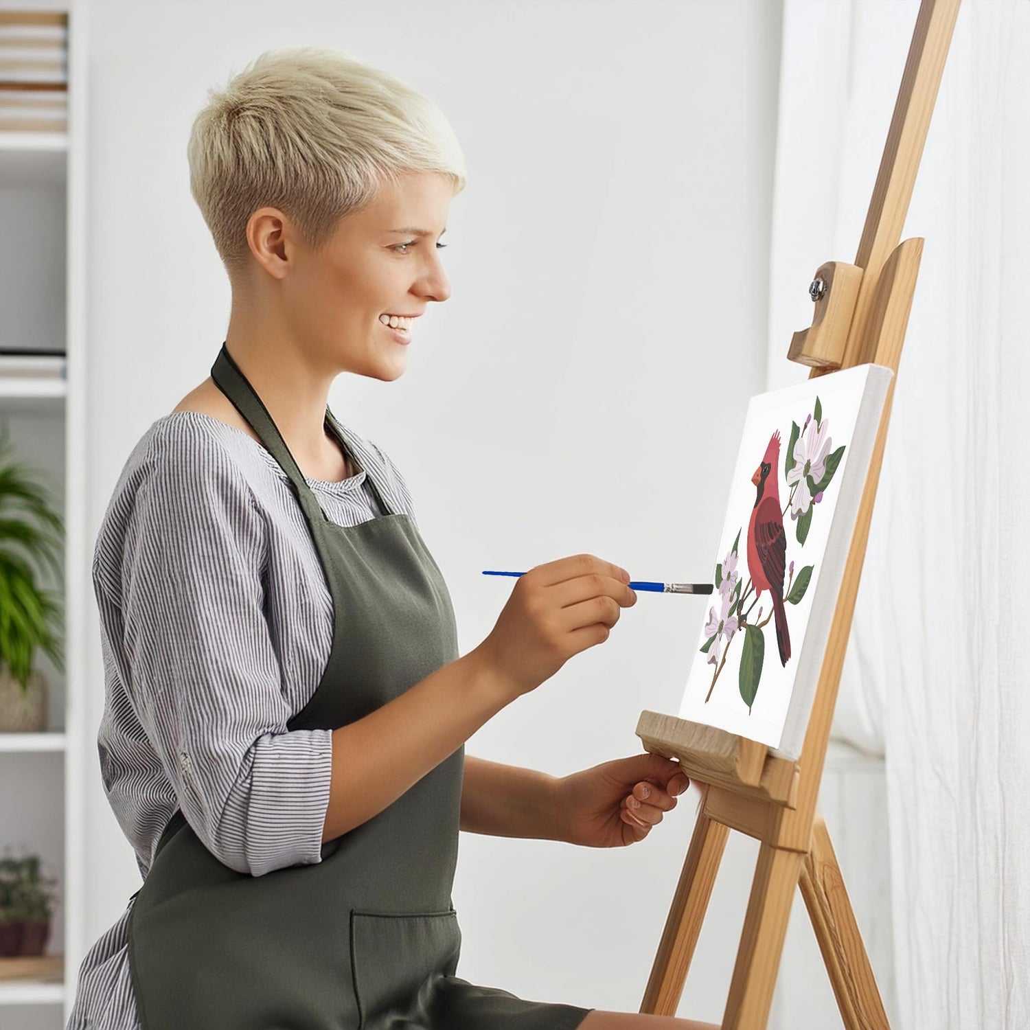 CraftLab Wild Birds Paint by Numbers Kit for Adults Teens Beginners, DIY Painting Accessories, Brushes Acrylic Paints, Stretched Canvas 10 x 12 inch Gift (Cardinal & Dogwood)