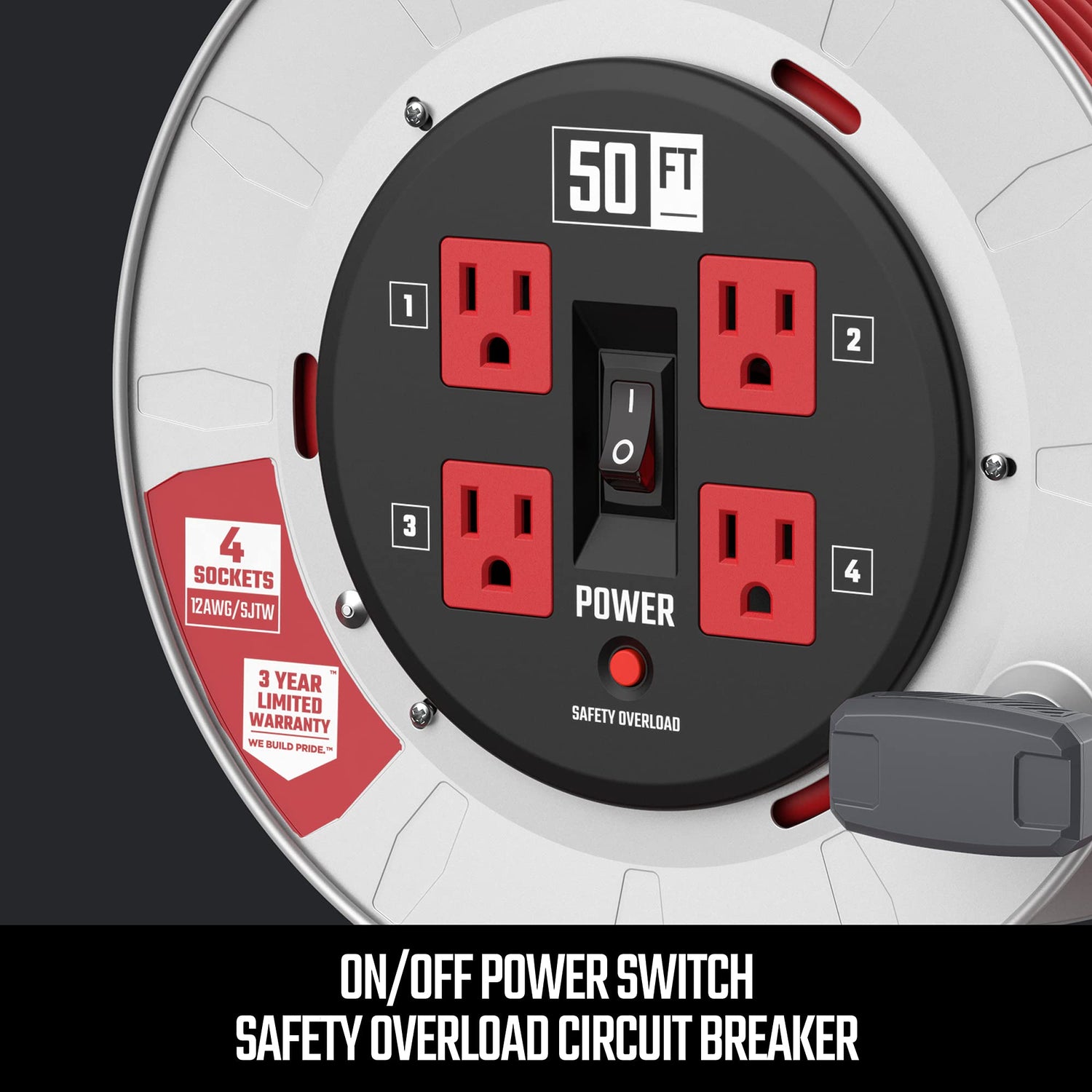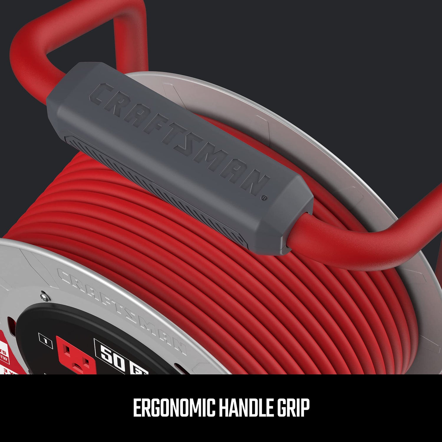 CRAFTSMAN 50 Ft. Contractor Edition Retractable Extension Cord Reel With 4 Outlets & Heavy Duty 12AWG SJTW Cable
